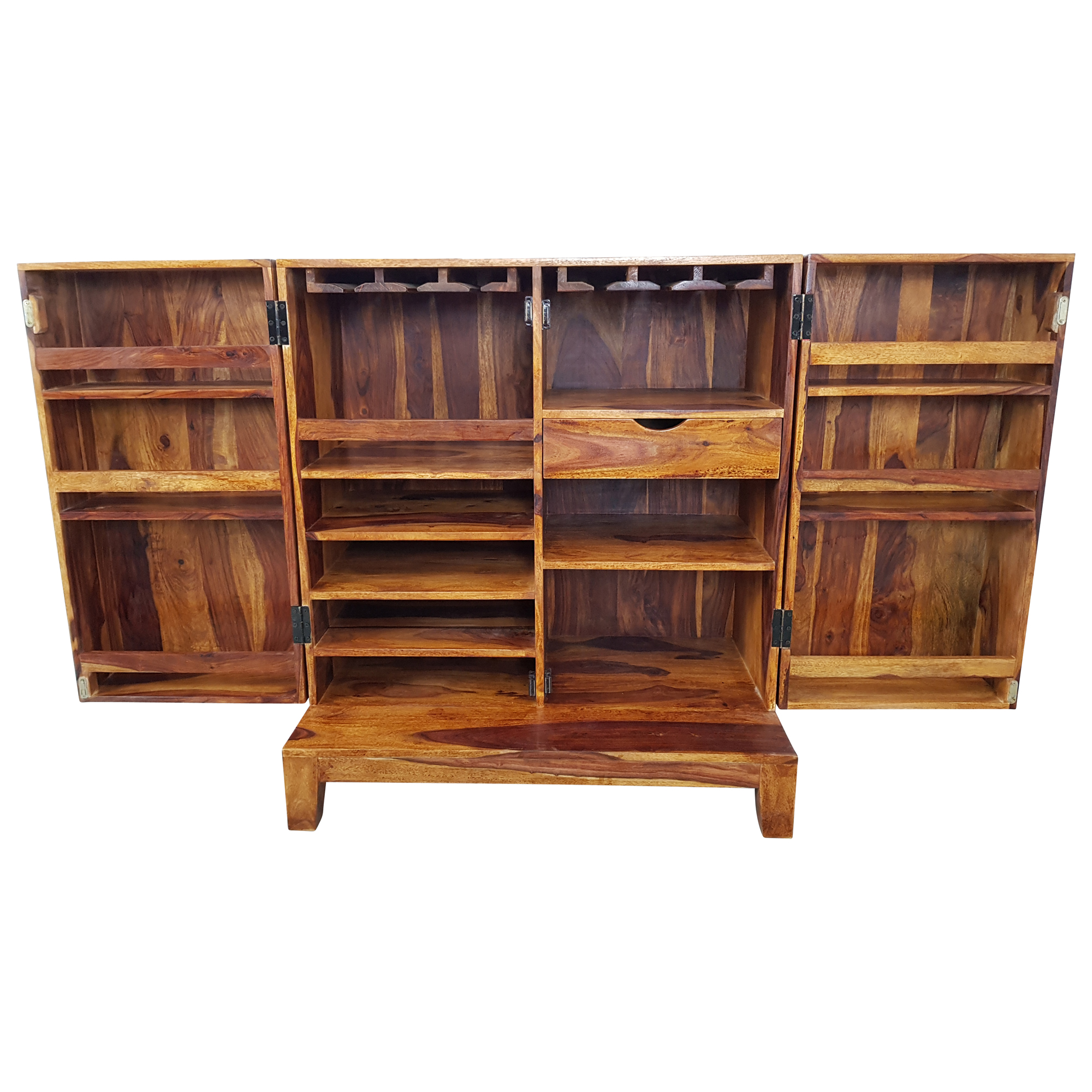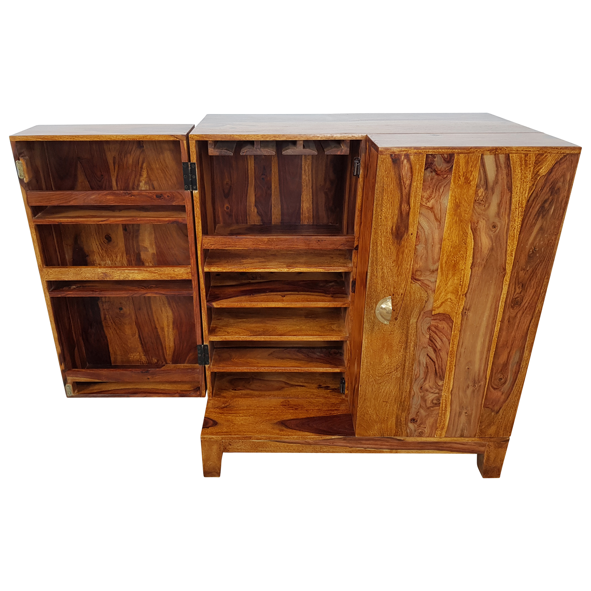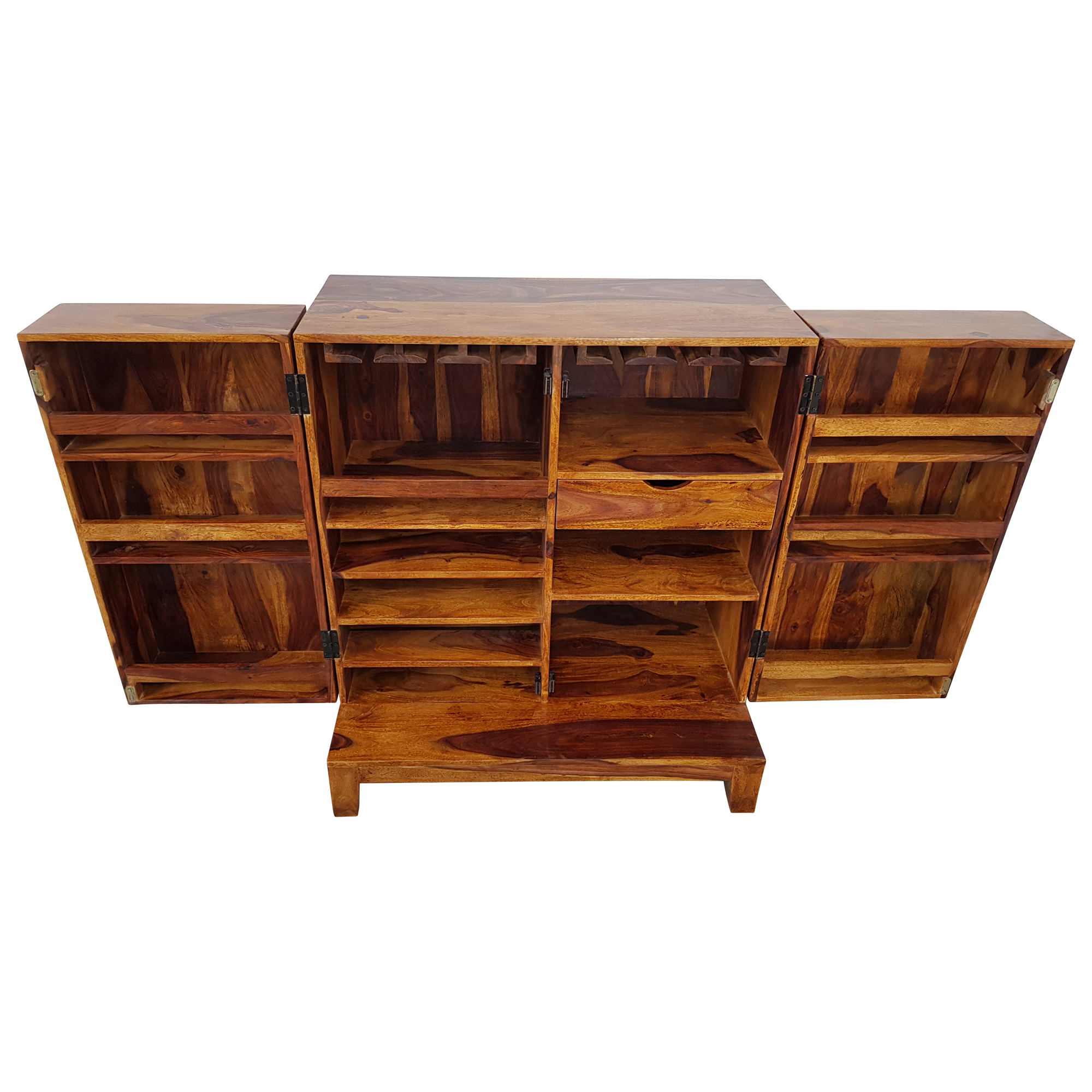 Barschrank Hausbar Schrank Weinregal Massiv-Holz Sheesham Weinschrank Design