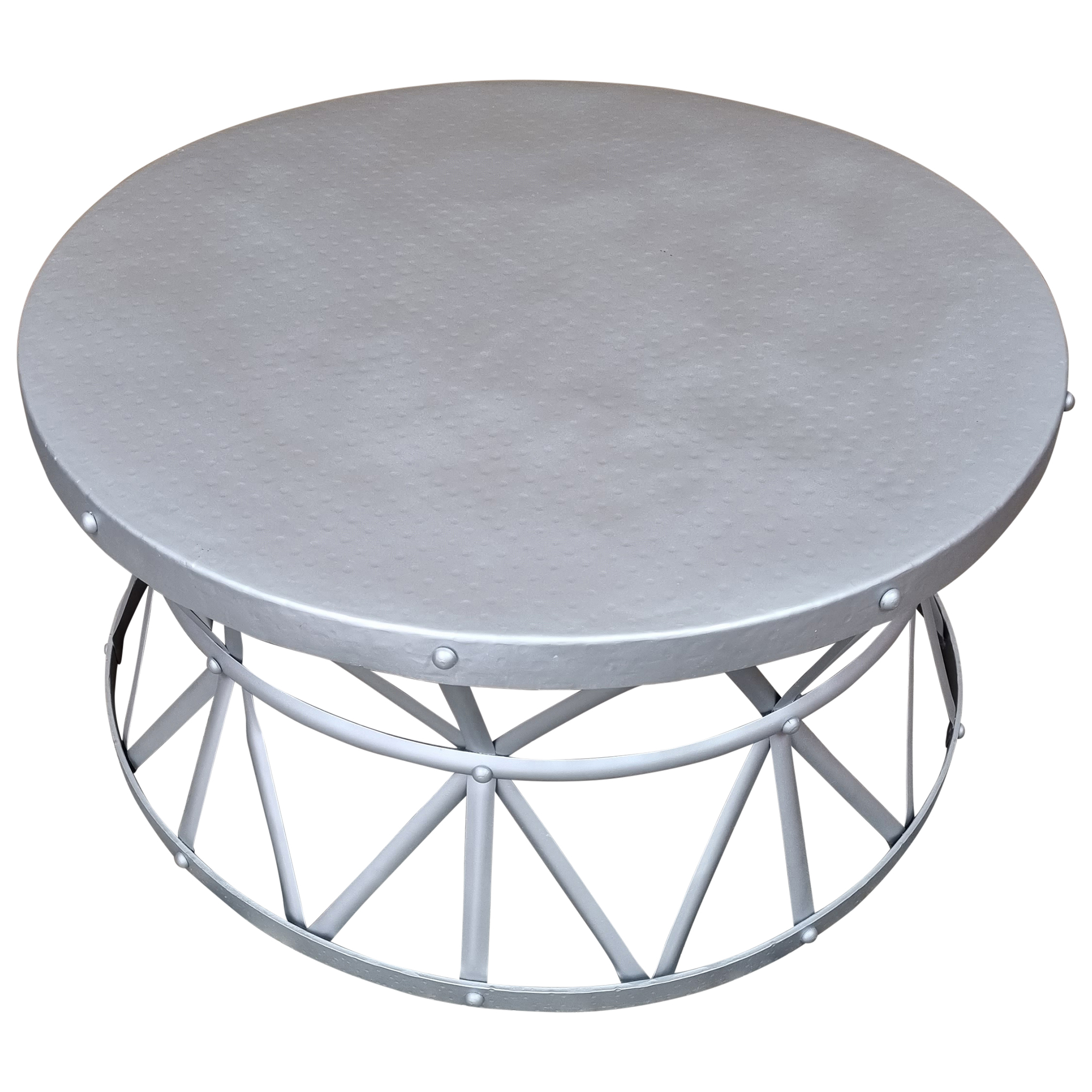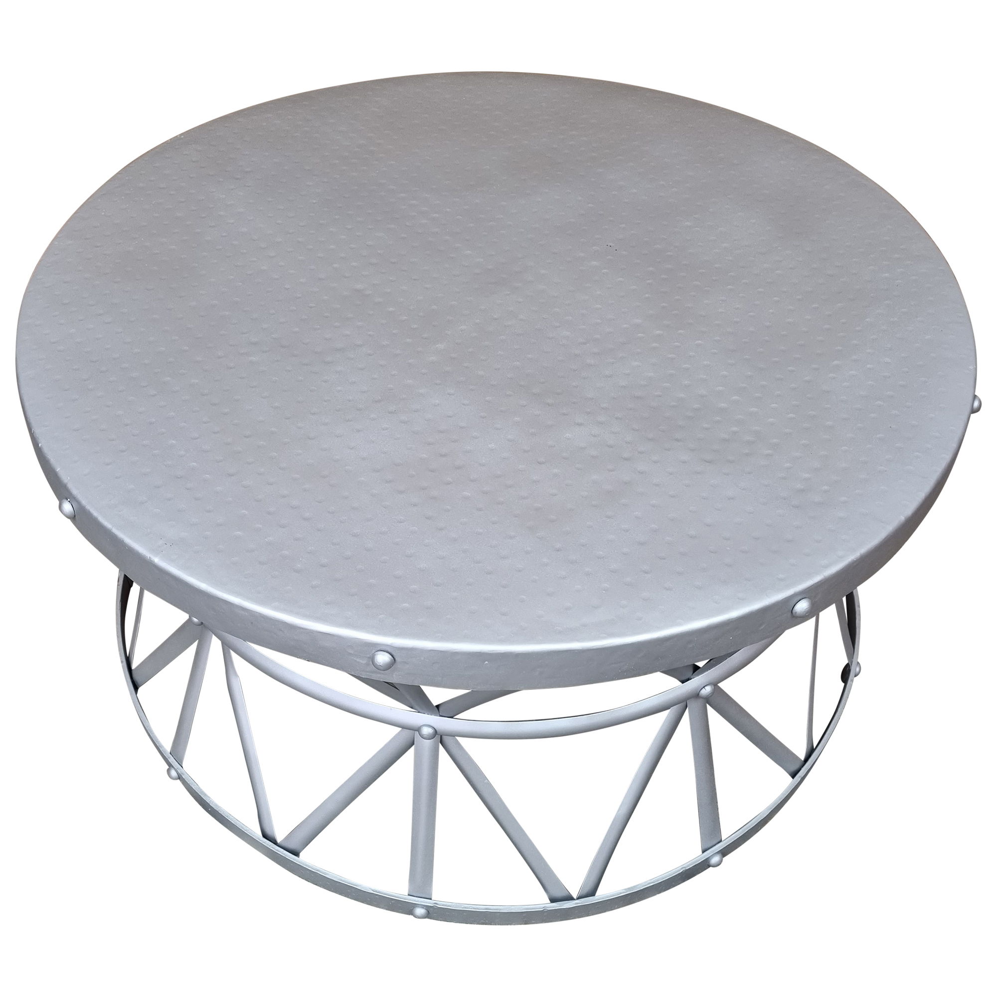 Couchtisch silber 90 Ø Rund Metall Hammerschlag Design aus Handarbeit Maße ca. (Breite / Tiefe / Höhe ): 90 / 90 / 45 cm
