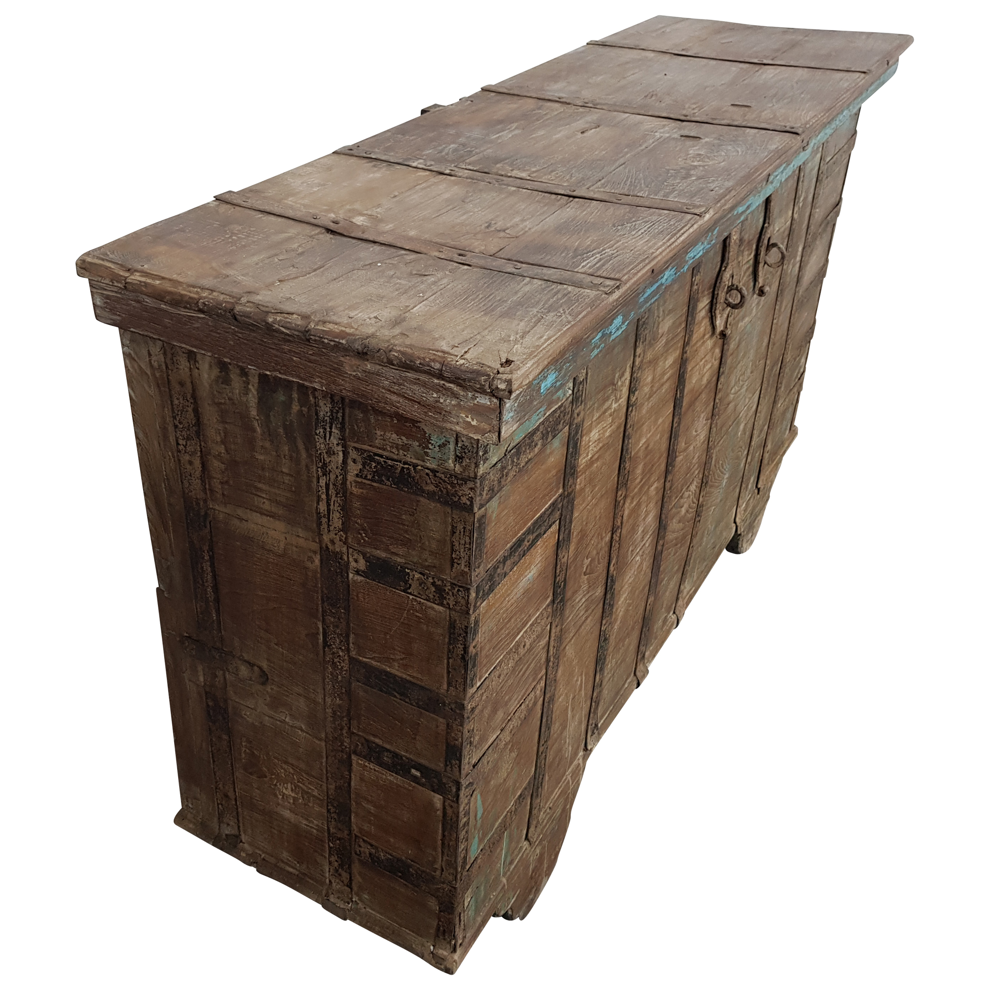 Diese hochwertige Truhe wirkt aufgrund des Vintage Designs nicht nur sehr alt, sie ist es auch. Aufgrund der Tatsache, dass diese alte Holztruhe aus echten antiken Türen hergestellt wurde, macht sie noch besonderer und unterstreicht das Upcycling bzw. die Nachhaltigkeit der Herstellung verschiedener Produkte in der Möbelbranche, was ein immer wichtigeres Thema sein sollte und dazu dient, unserer Umwelt einen Gefallen zu tun. Die antike Truhe hat Maße von ca. (Breite / Tiefe / Höhe ): 140 / 42 / 85 cm und wir mit einem oder sogar mit zwei Verschlüssen geliefert, sodass diese bei Bedarf sogar verschlossen werden kann.