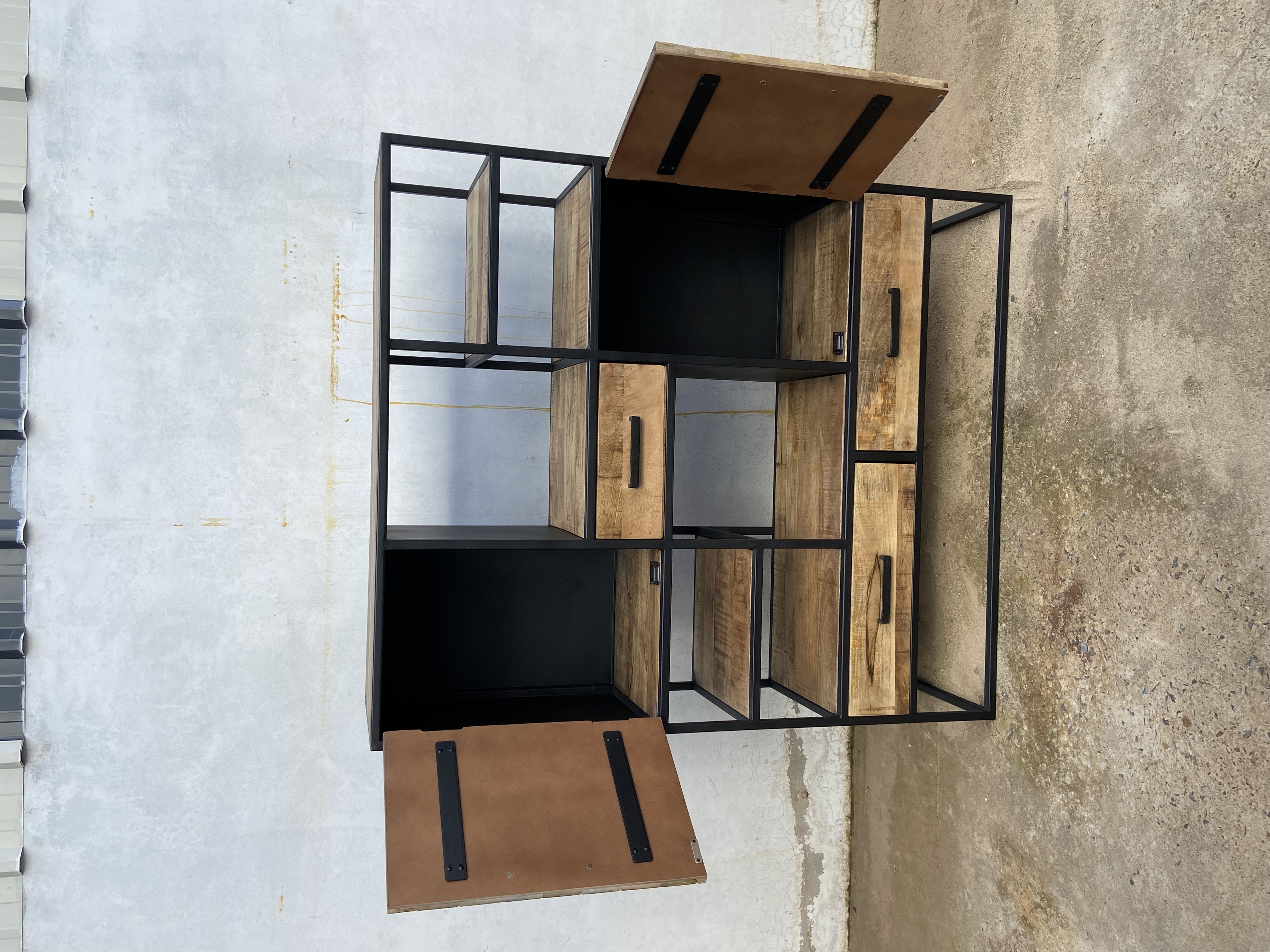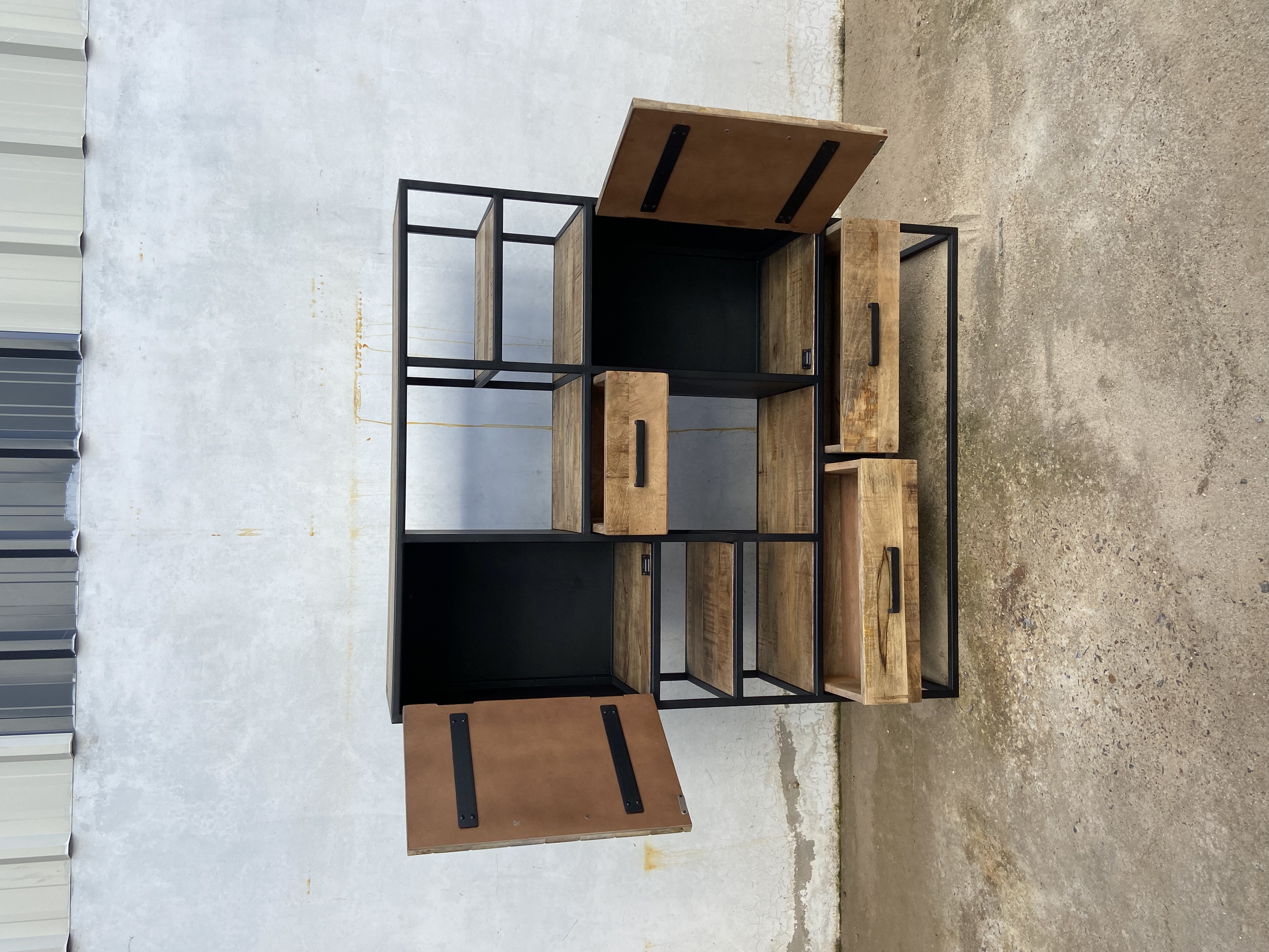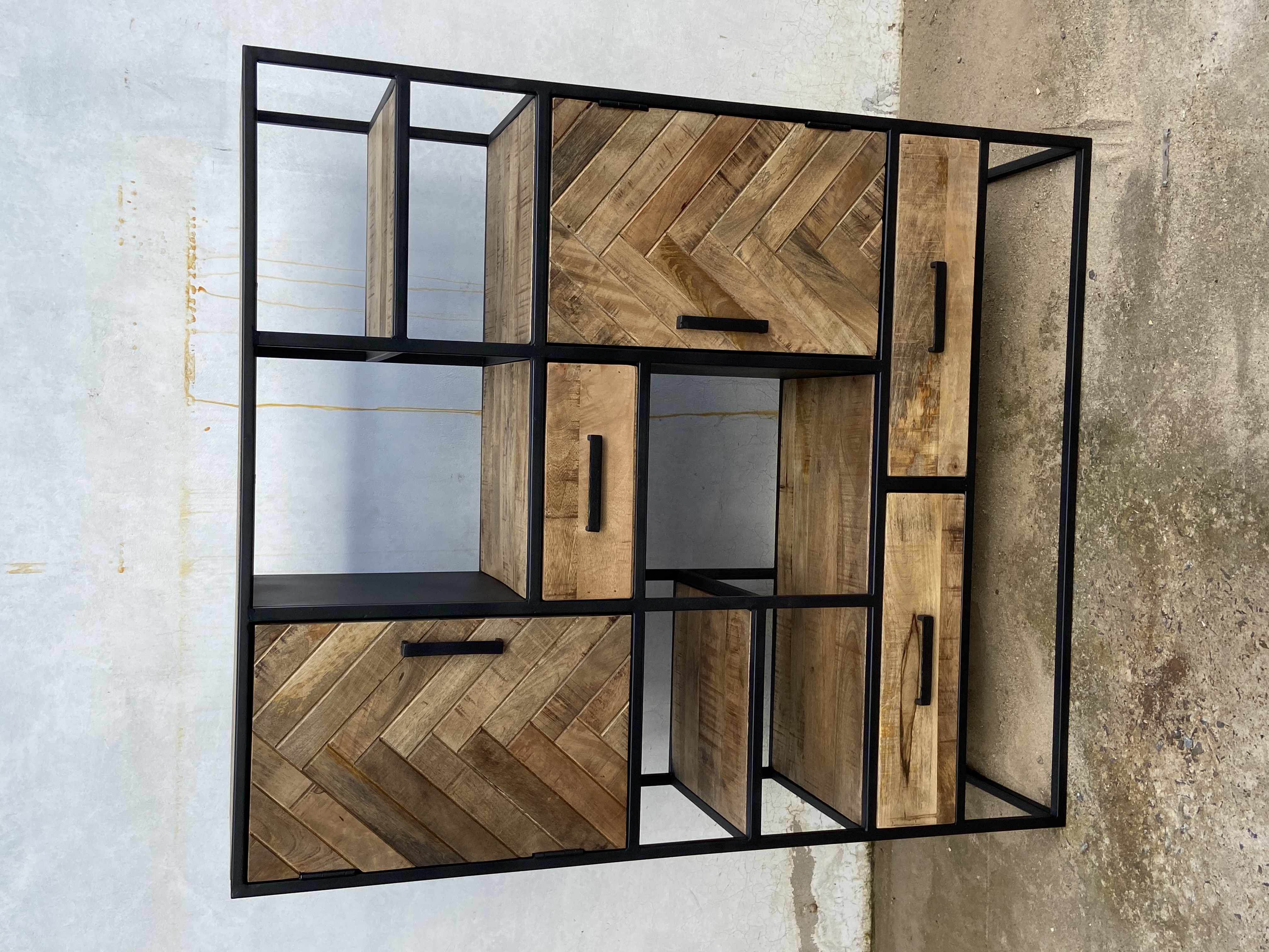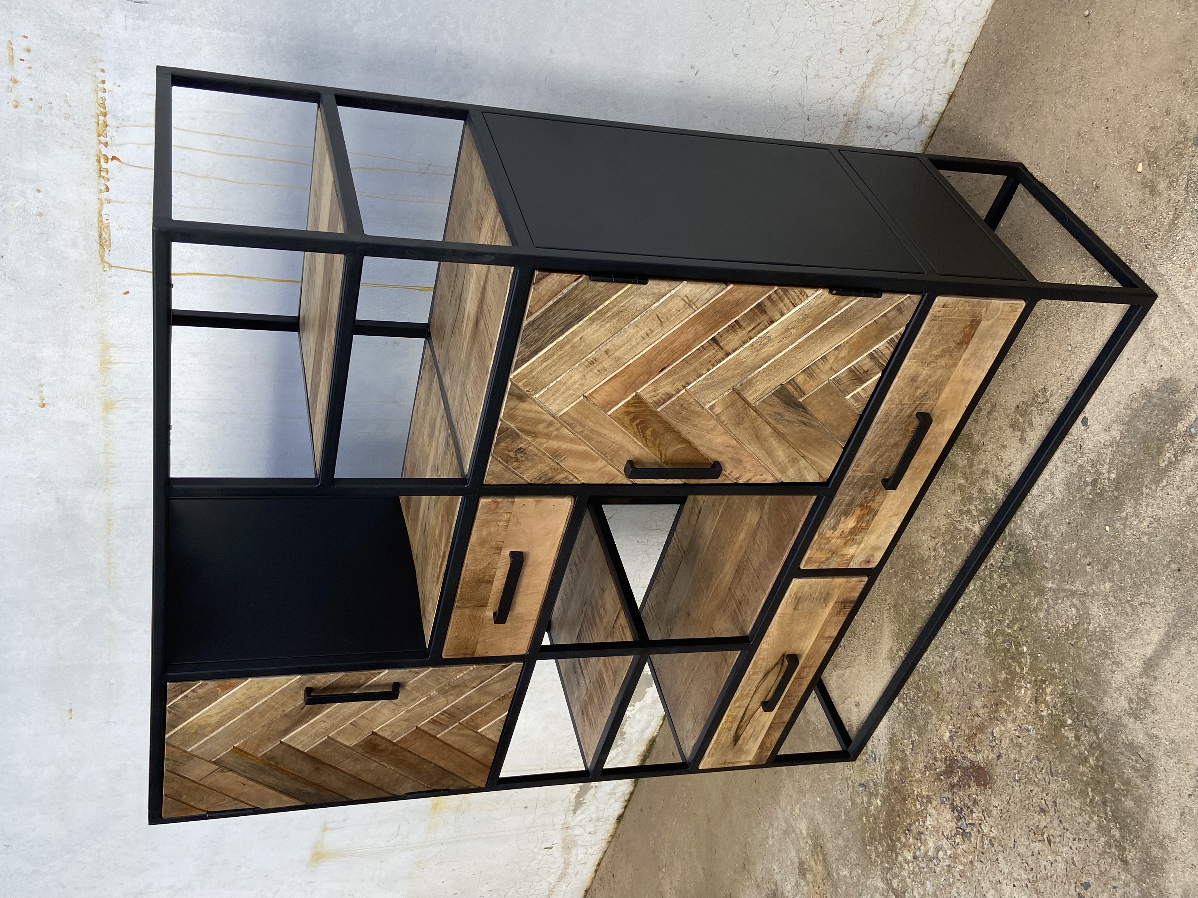 Highboard Fischgräten Muster mit Schubladen Massivholz Mangoholz