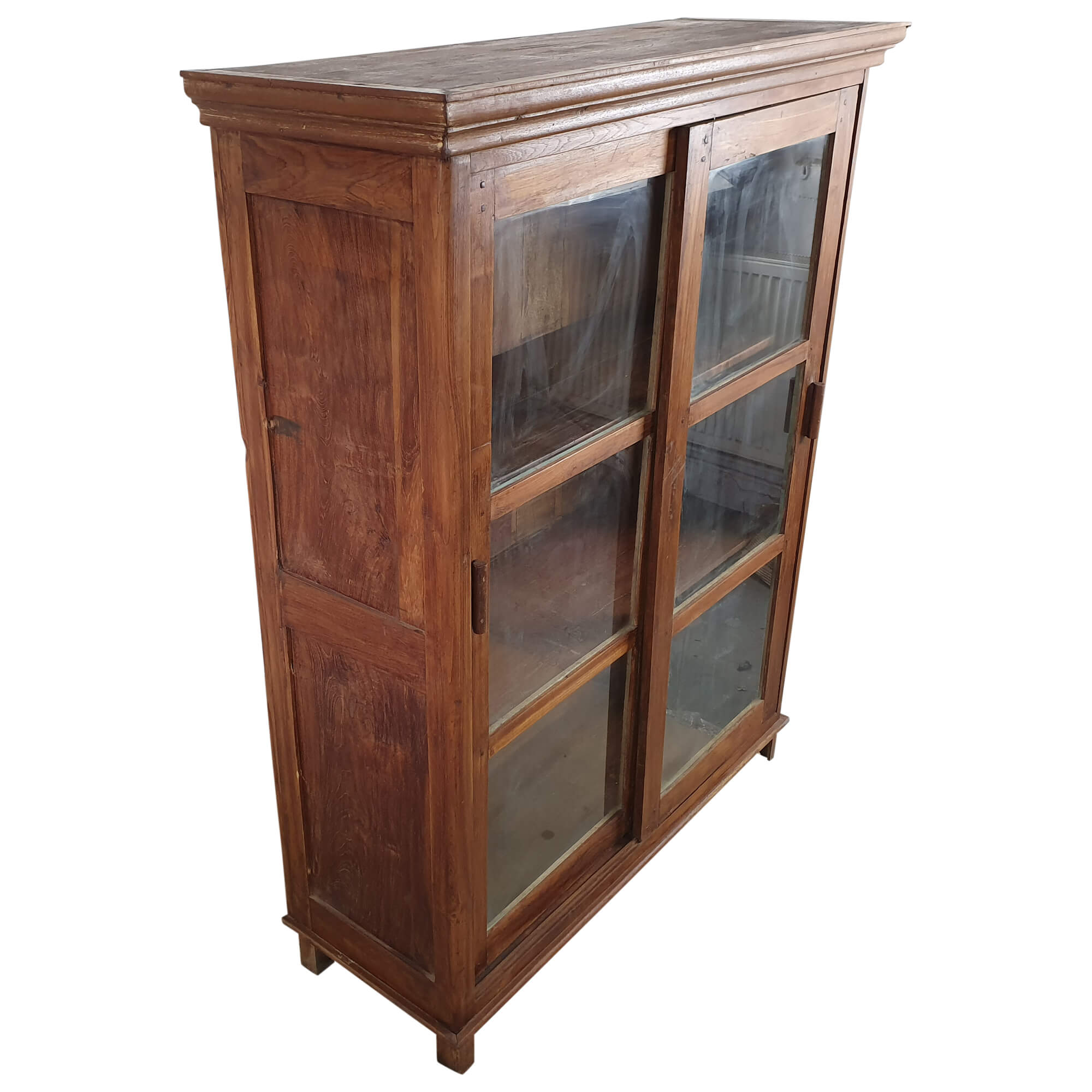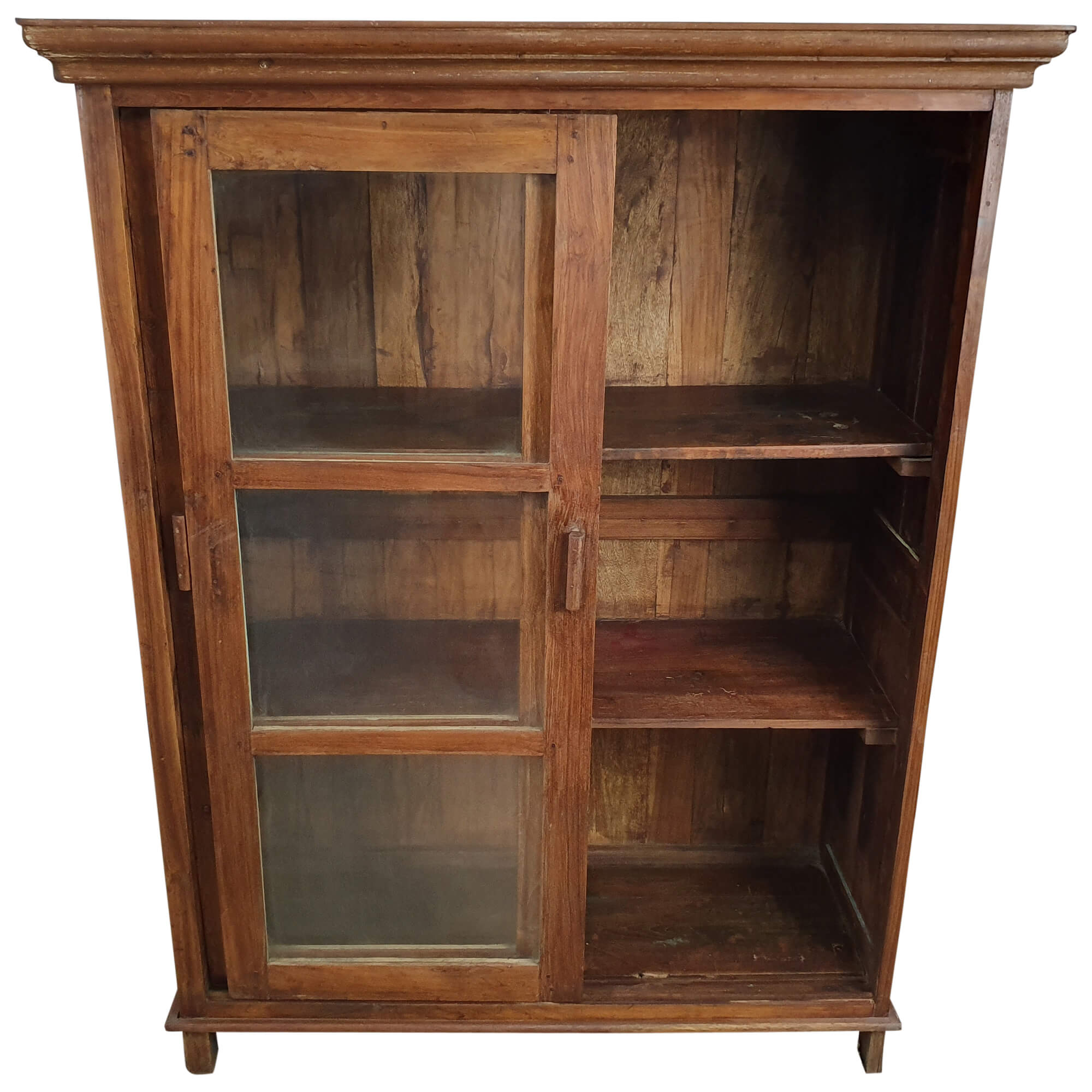 In einer schlichten Eleganz präsentiert sich dieser wunderschöne hohe Vitrinenschrank. Hergestellt in echter Handarbeit und der Verwendung von hochwertigem Teakholz ist eine einzigartige Vitrine entstanden, welche nicht nur rein optisch von Anfang an überzeugt, sondern ebenso in Sachen Nutzungskomfort und Qualität.