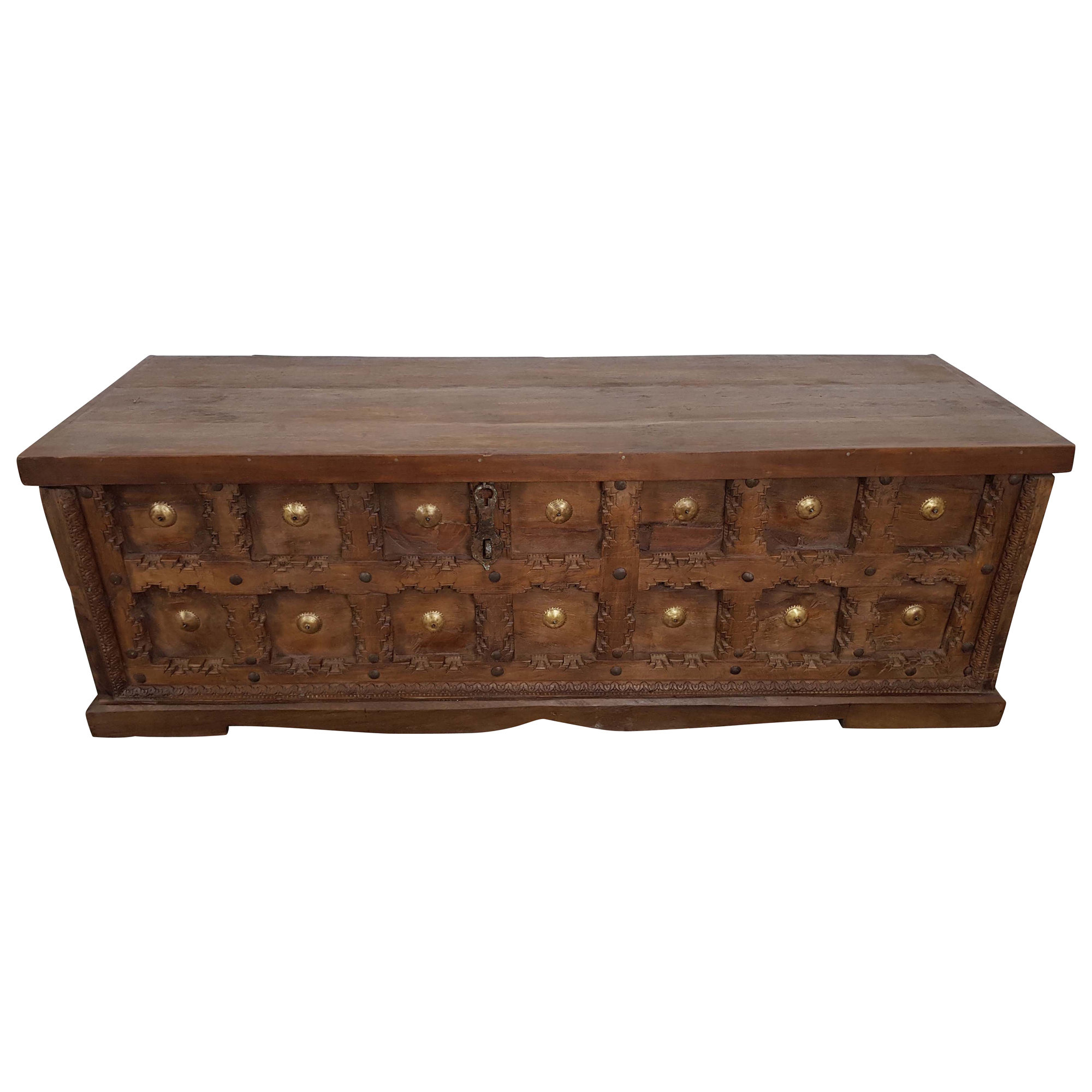 Diese atemberaubende Truhe ist etwas ganz Besonderes. Hergestellt aus alten massiven Türen handelt es sich um eine besonders robuste und strapazierfähige Truhe, die schon die eine oder andere Geschichte aus der Vergangenheit zu erzählen hat. Des Weiteren handelt es sich hier um echte Handarbeit, was bedeutet, dass es sich bei jeder massiven Truhe um ein echtes Unikat handelt.