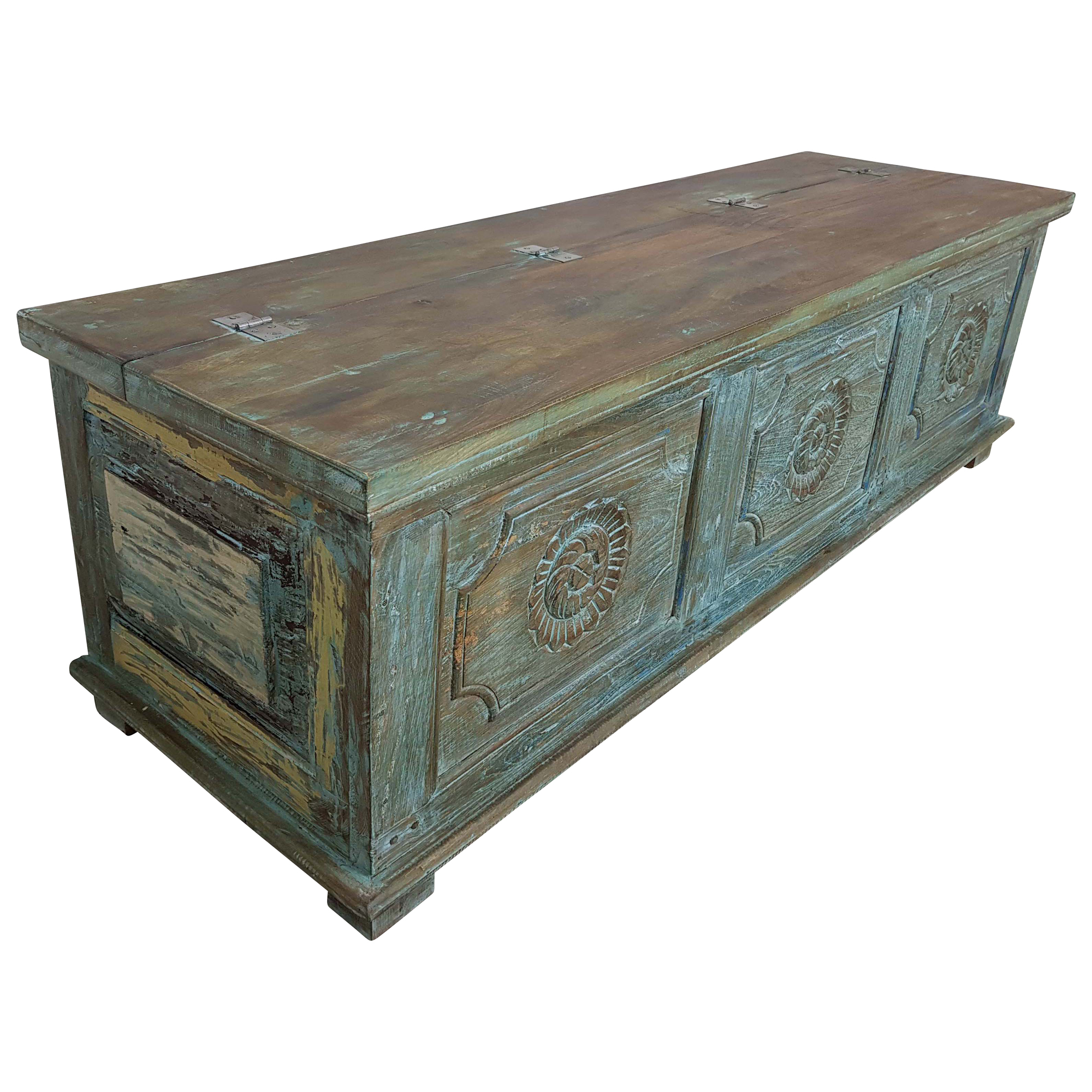 Produktinformationen "Holztruhe Truhe Kiste Vintage blau Massiv aus Altholz Türen Handarbeit Unikat 16"