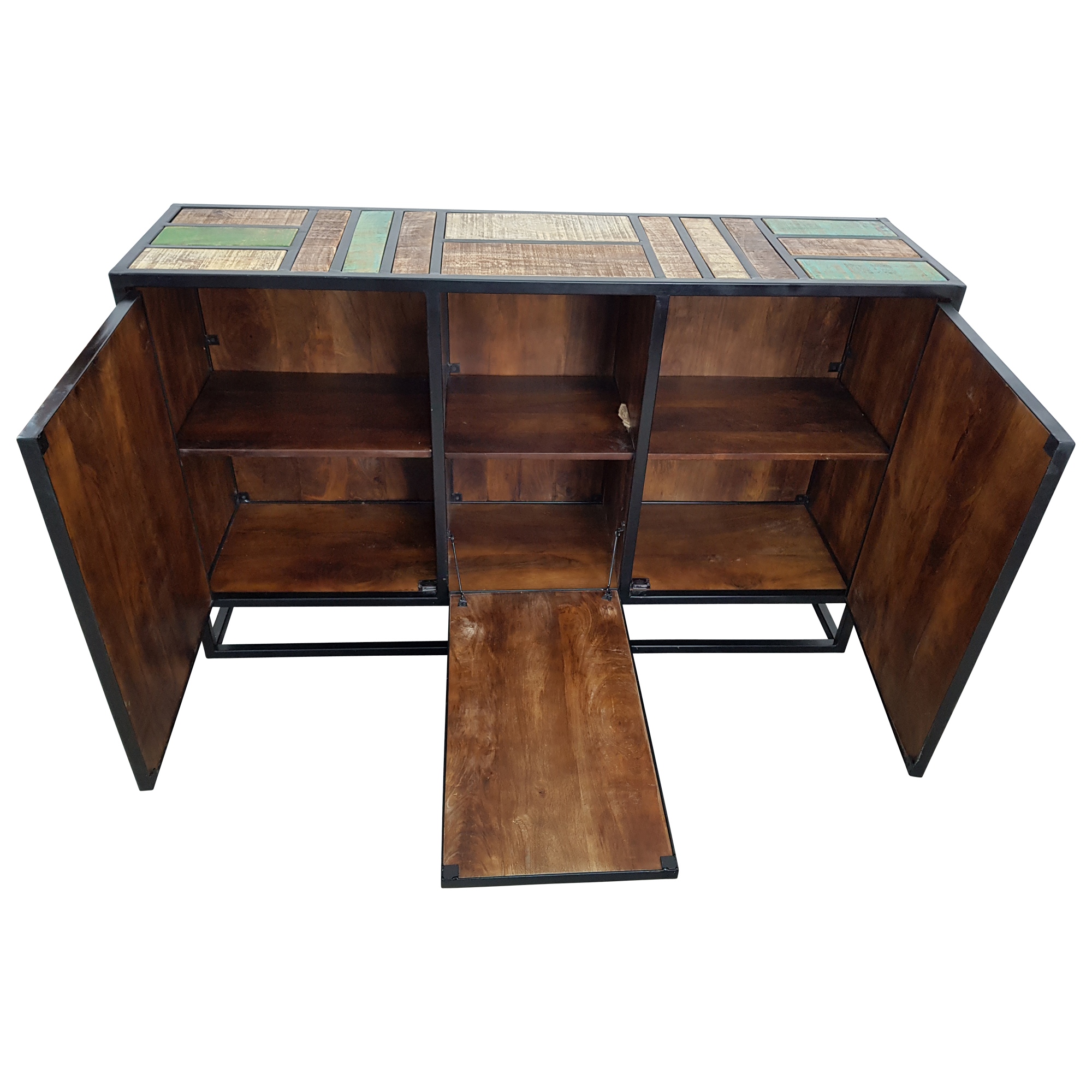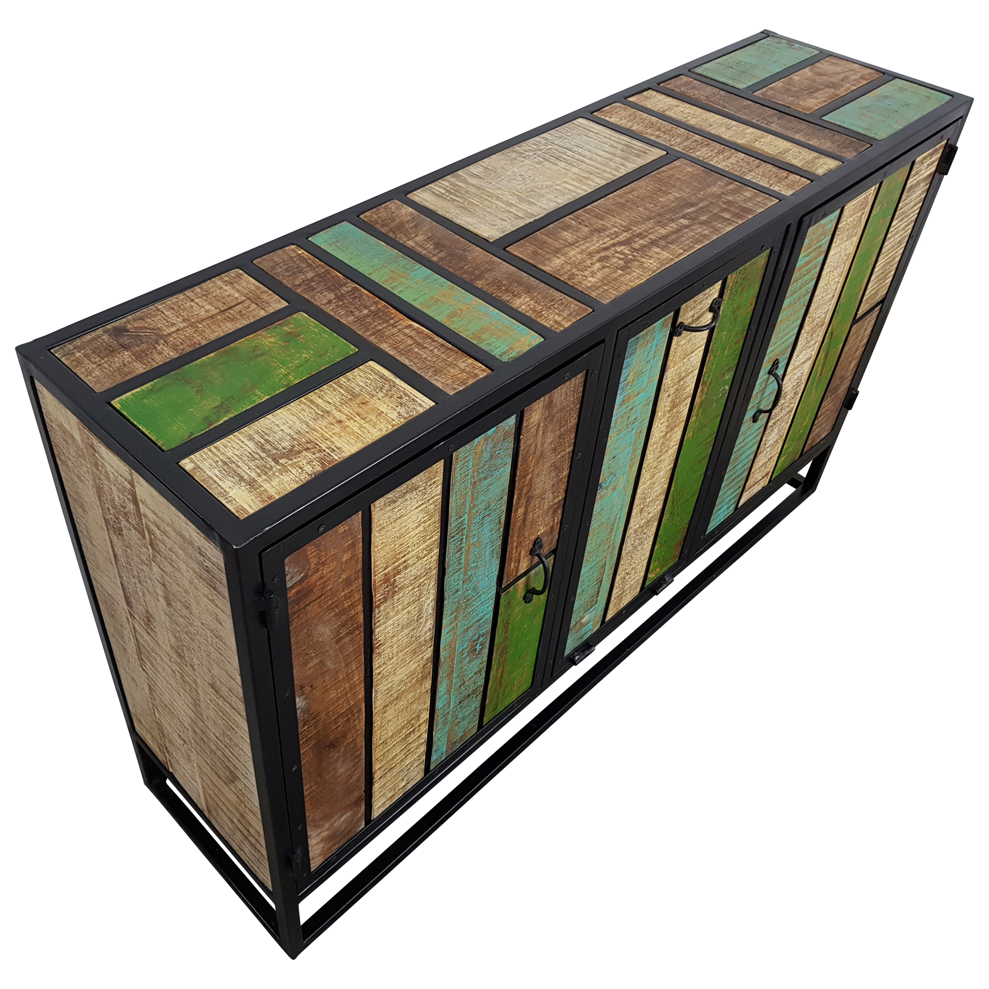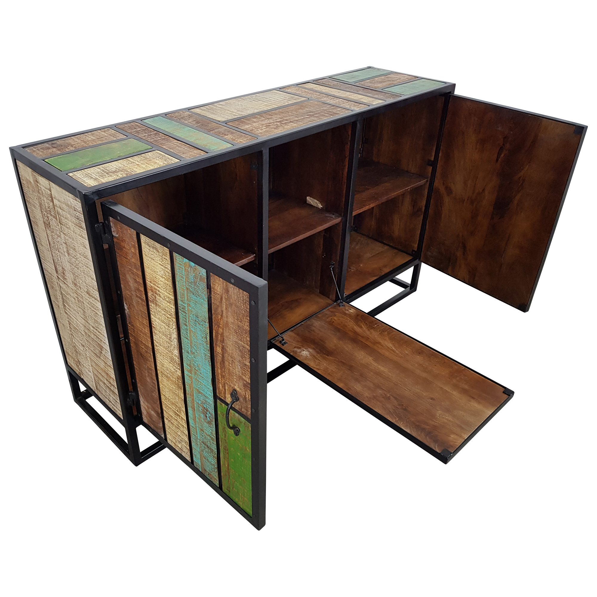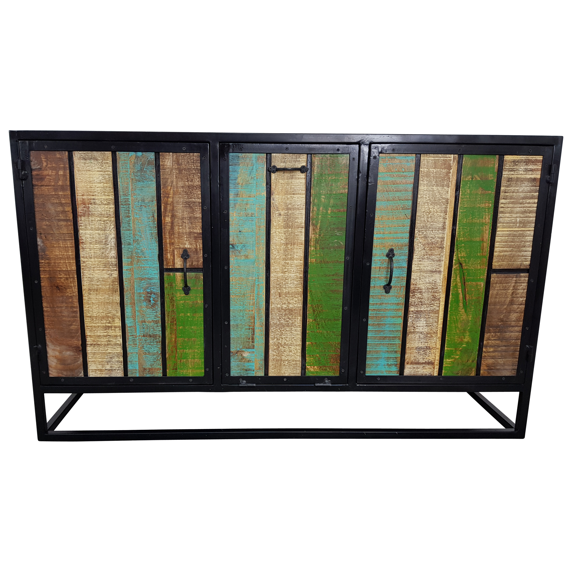 Sideboard bunt Massivholz mit 3 Türen und 3 ablage Bretter, gefertigt in Handarbeit