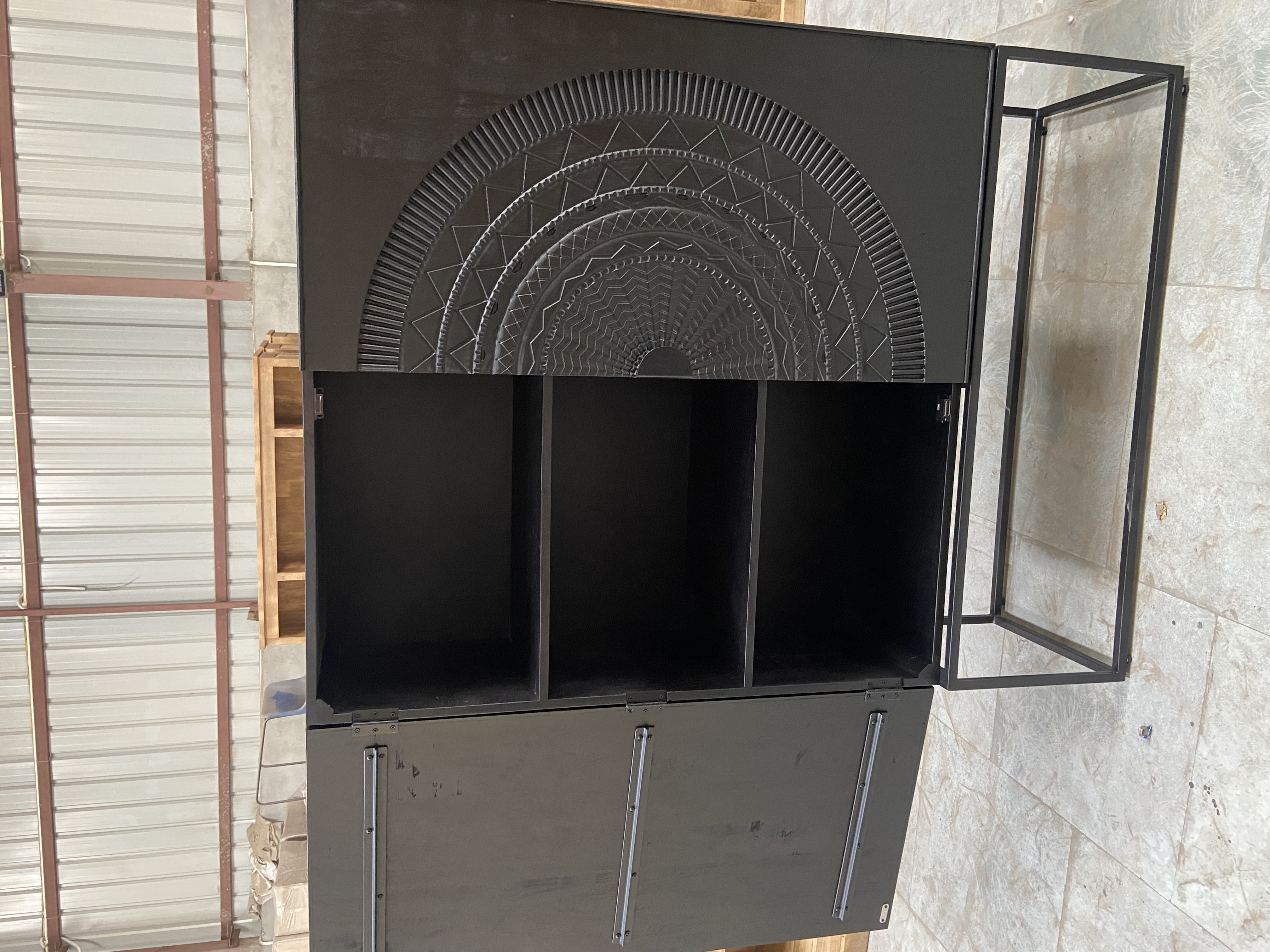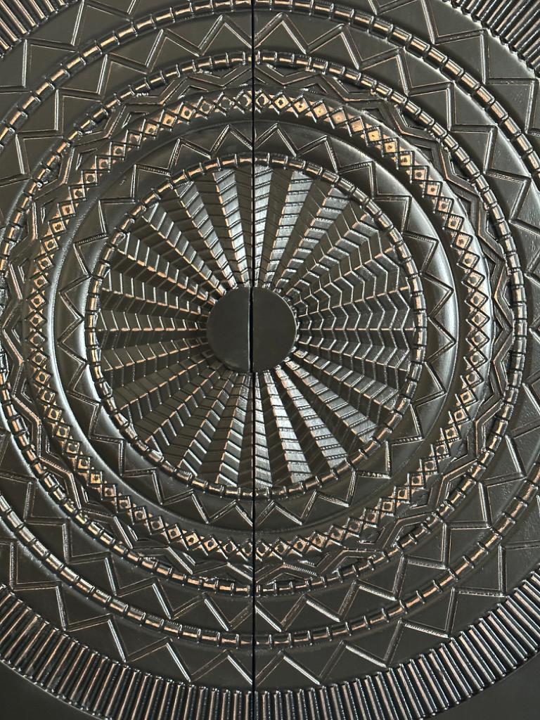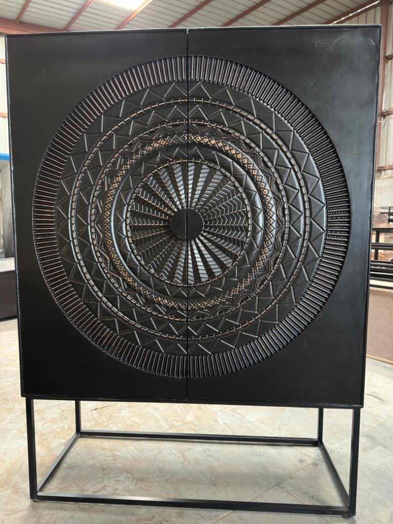 Produktinformationen "Solitärschrank Highboard Massivholz mit Schnitzereien schwarz"