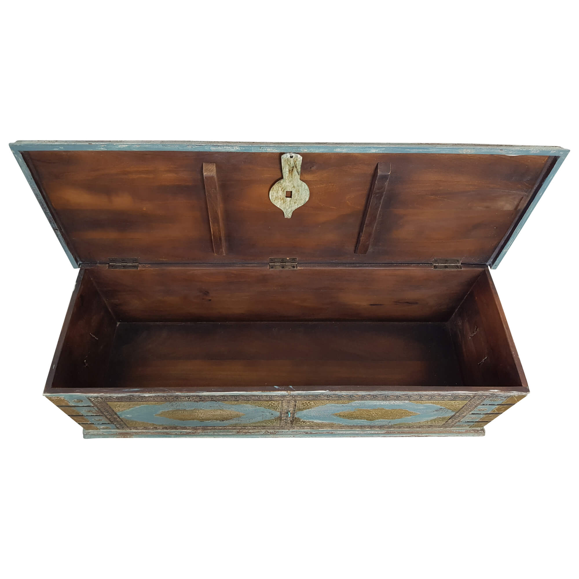 Truhe Kiste Holztruhe Vintage Blau Box aus Altholz Antik Handarbeit Unikat 15