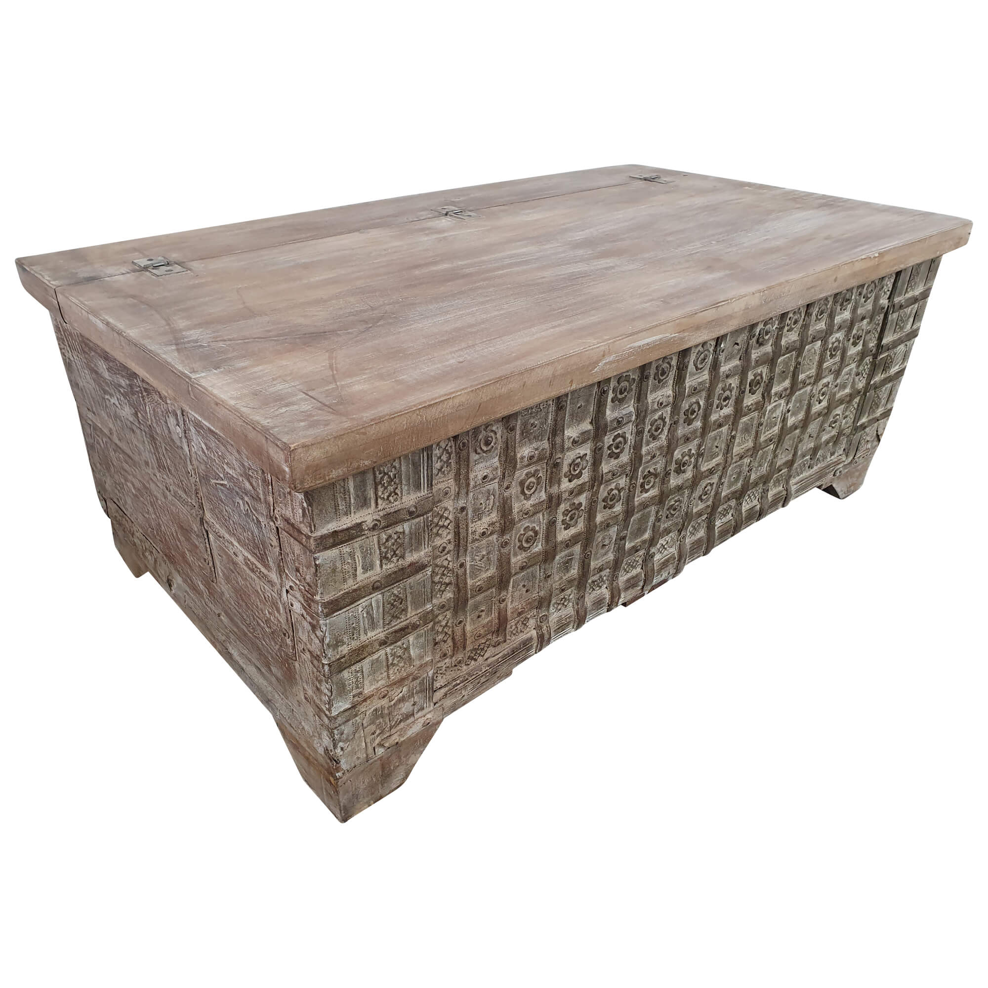 Dieser wunderschöne Truhen Couchtisch präsentiert sich in einem atemberaubenden und einzigartigen Design. Hergestellt aus echter Handarbeit wurde hier antikes Massivholz verarbeitet. Durch feine Schnitzarbeiten handelt es sich bei dieser geräumigen Truhe um ein echtes Einzelstück, welches es so nicht noch einmal auf dem Markt gibt.