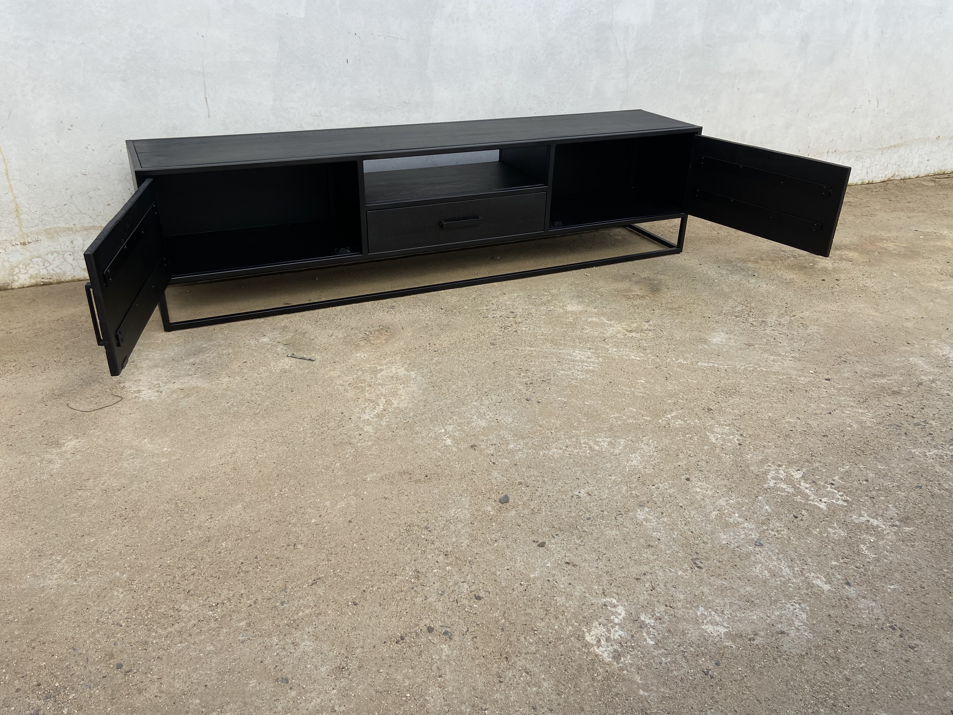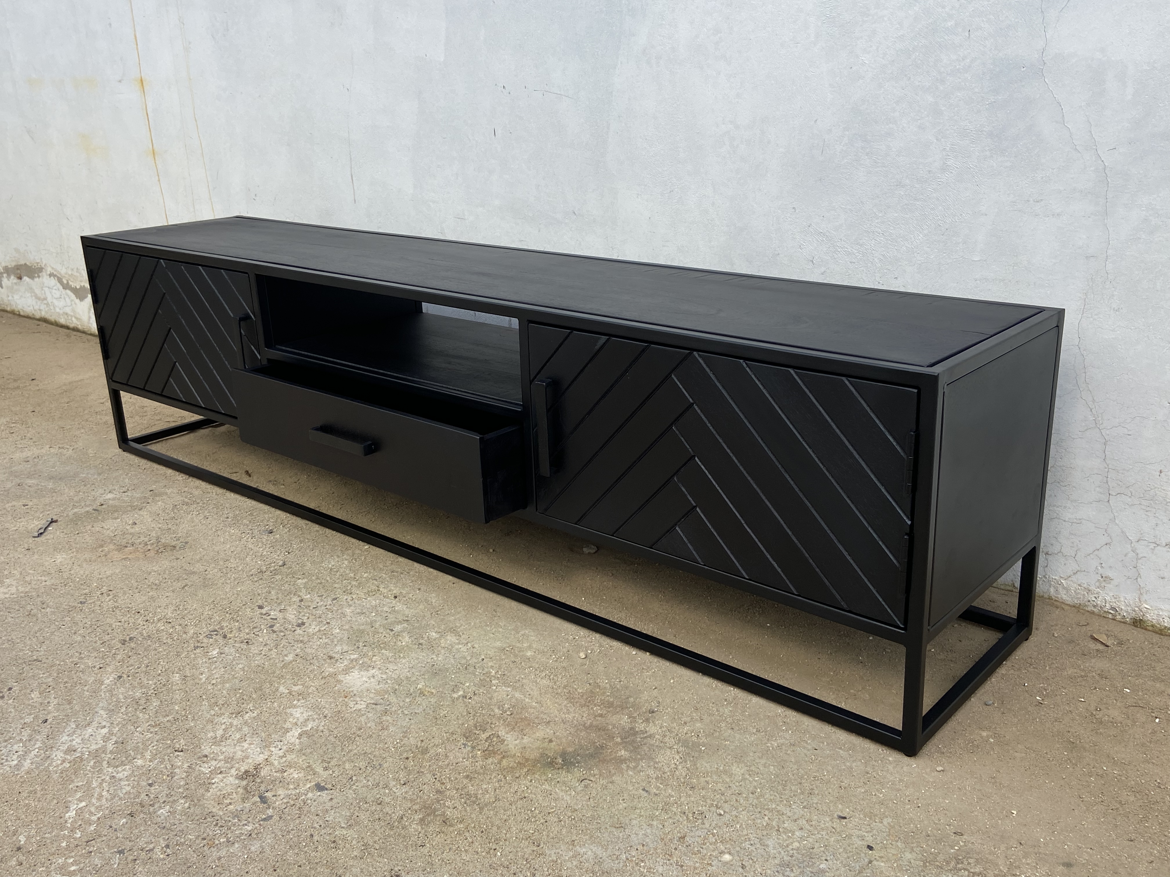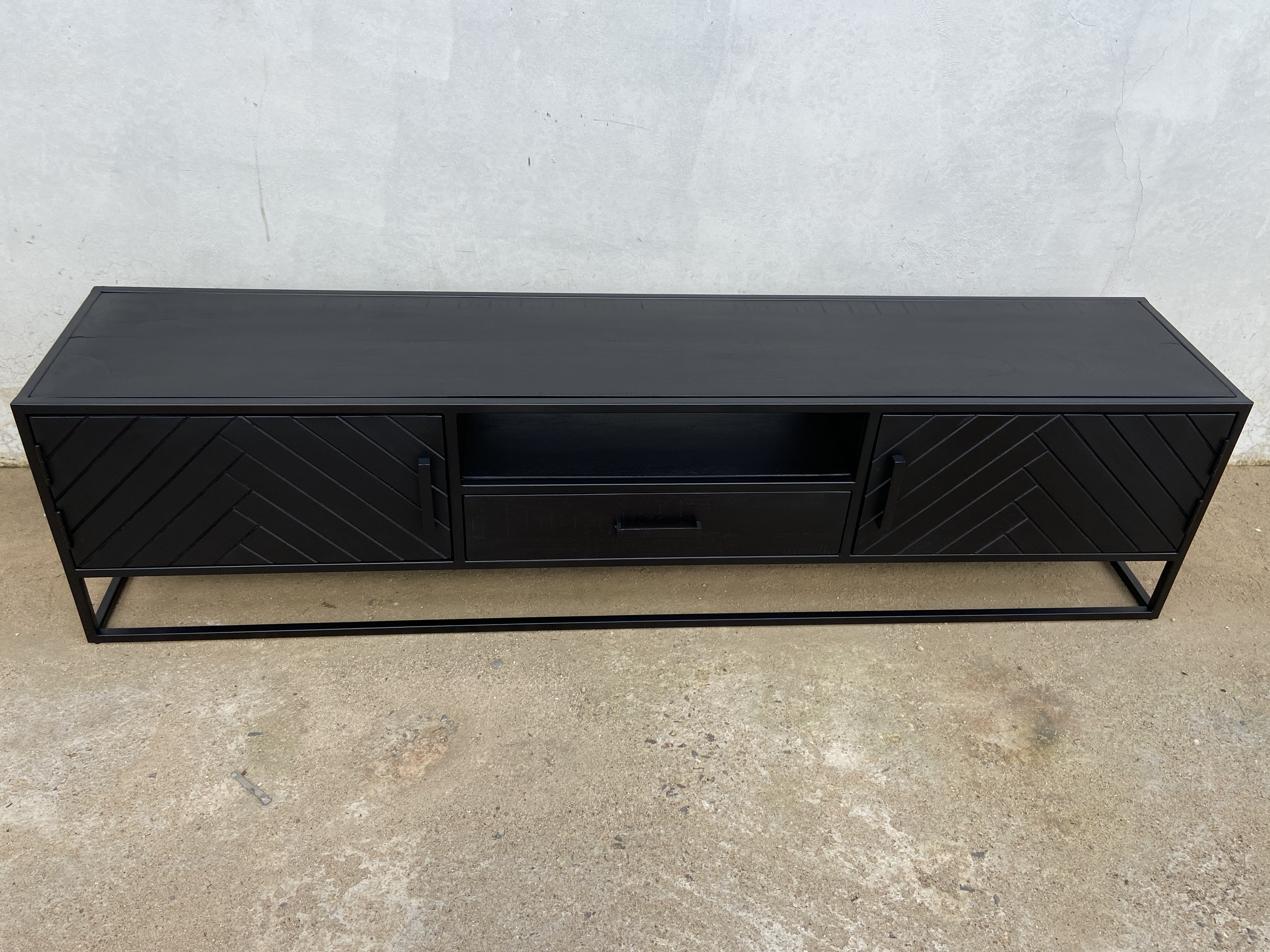 1 x TV Lowboard im Fischgräten Design Massivholz schwarz mit schwarzem Metall gefertigt in Handarbeit Maße ca. (Breite / Tiefe / Höhe ): 200 / 40 / 50 cm