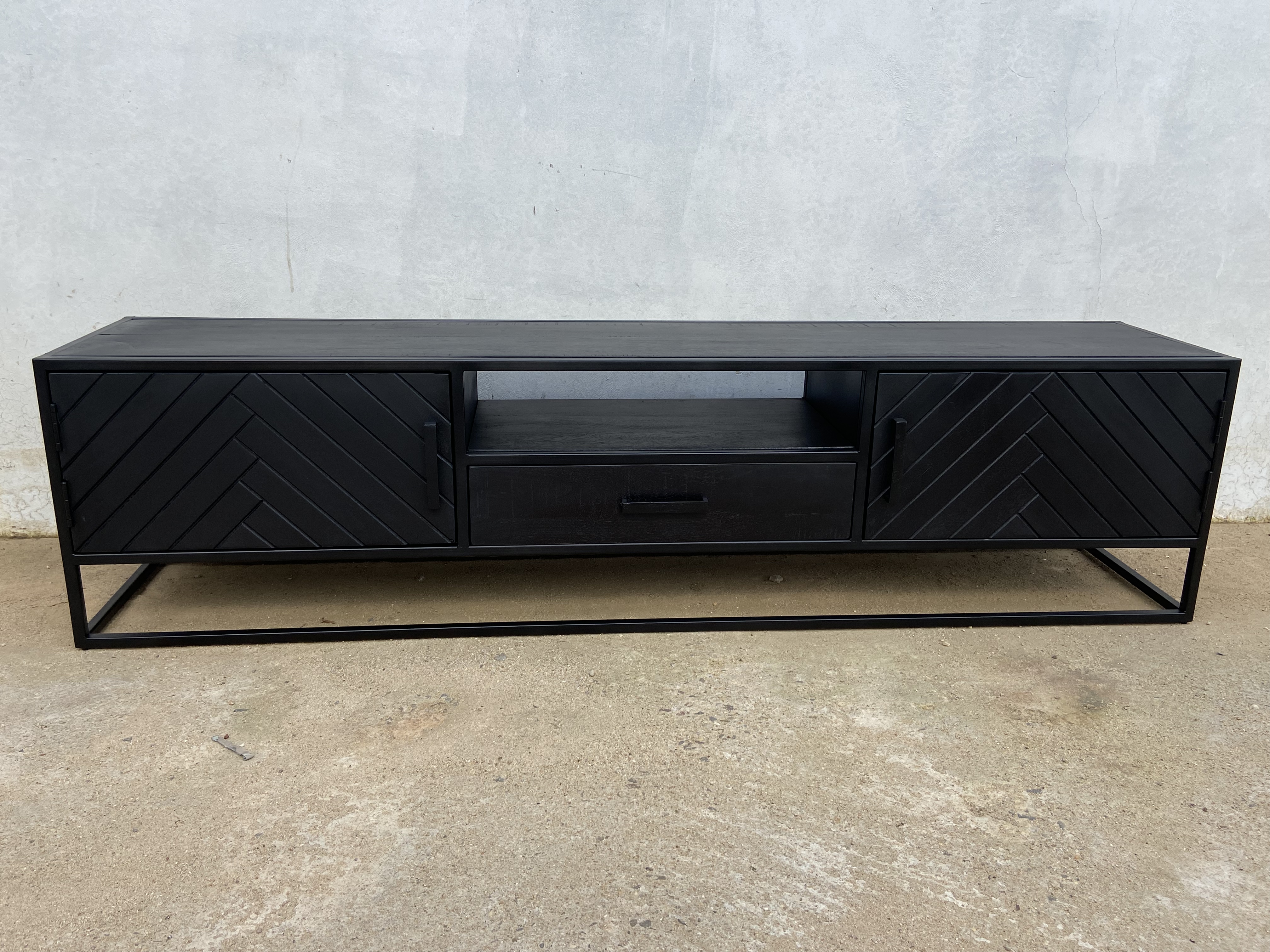 TV-Lowboard Fischgräten Muster mit Schublade 200 cm schwarz