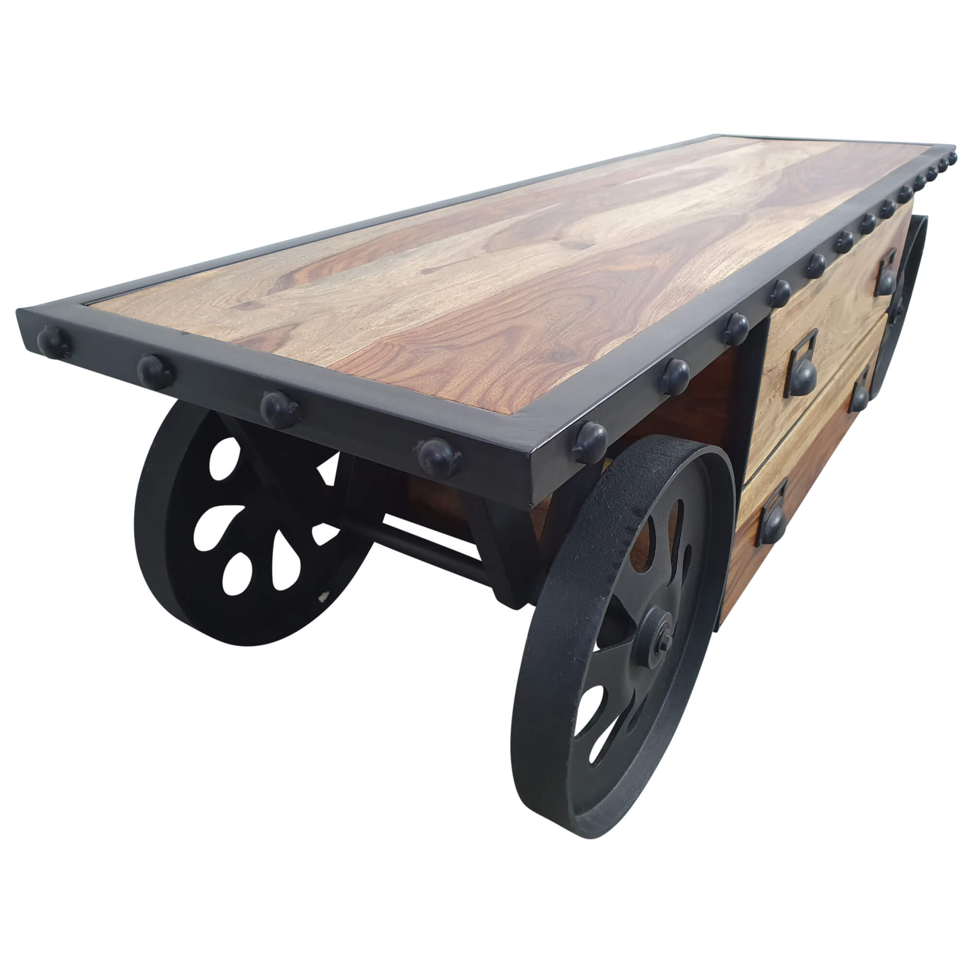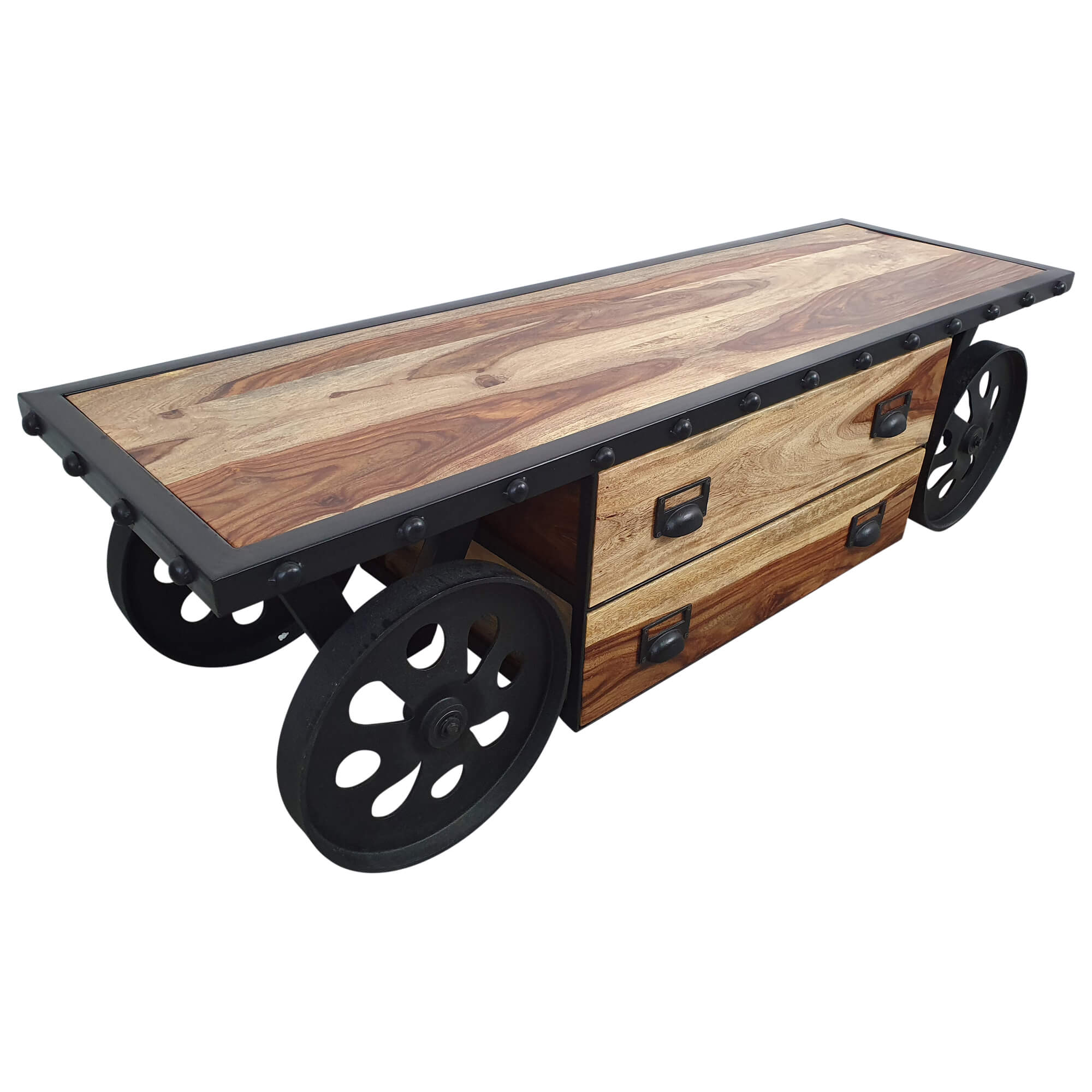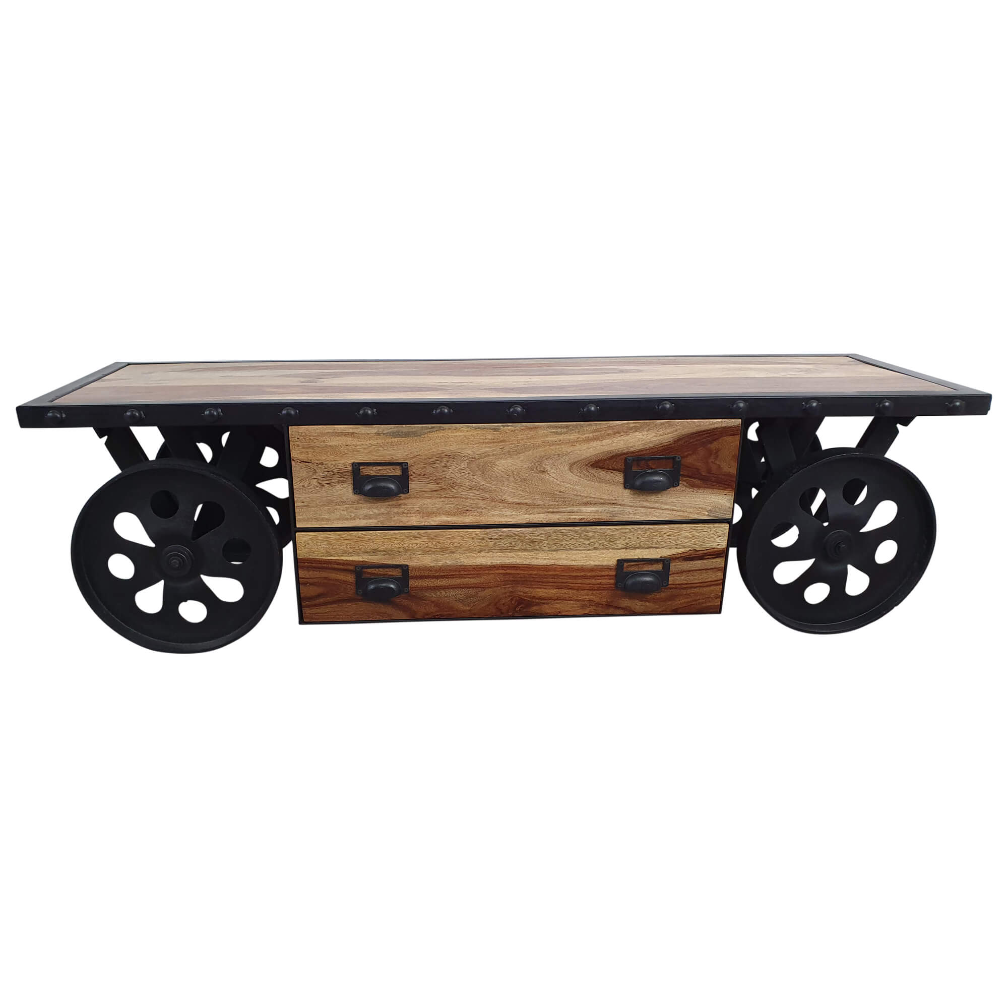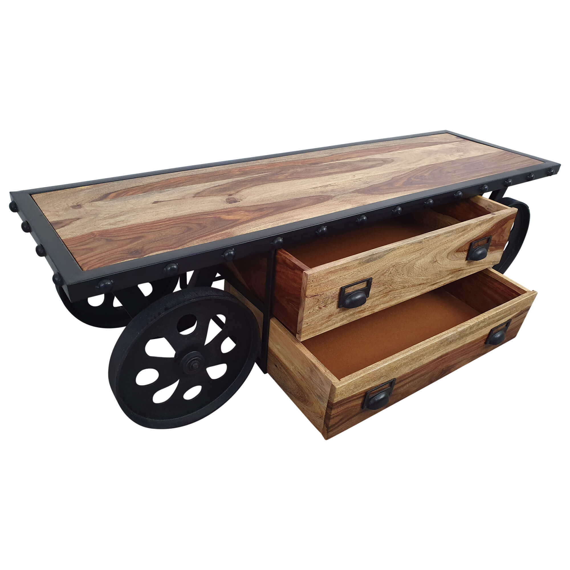 TV-Lowboard Möbel mit Rädern Teak Sideboard Massiv Holz Industrial Design