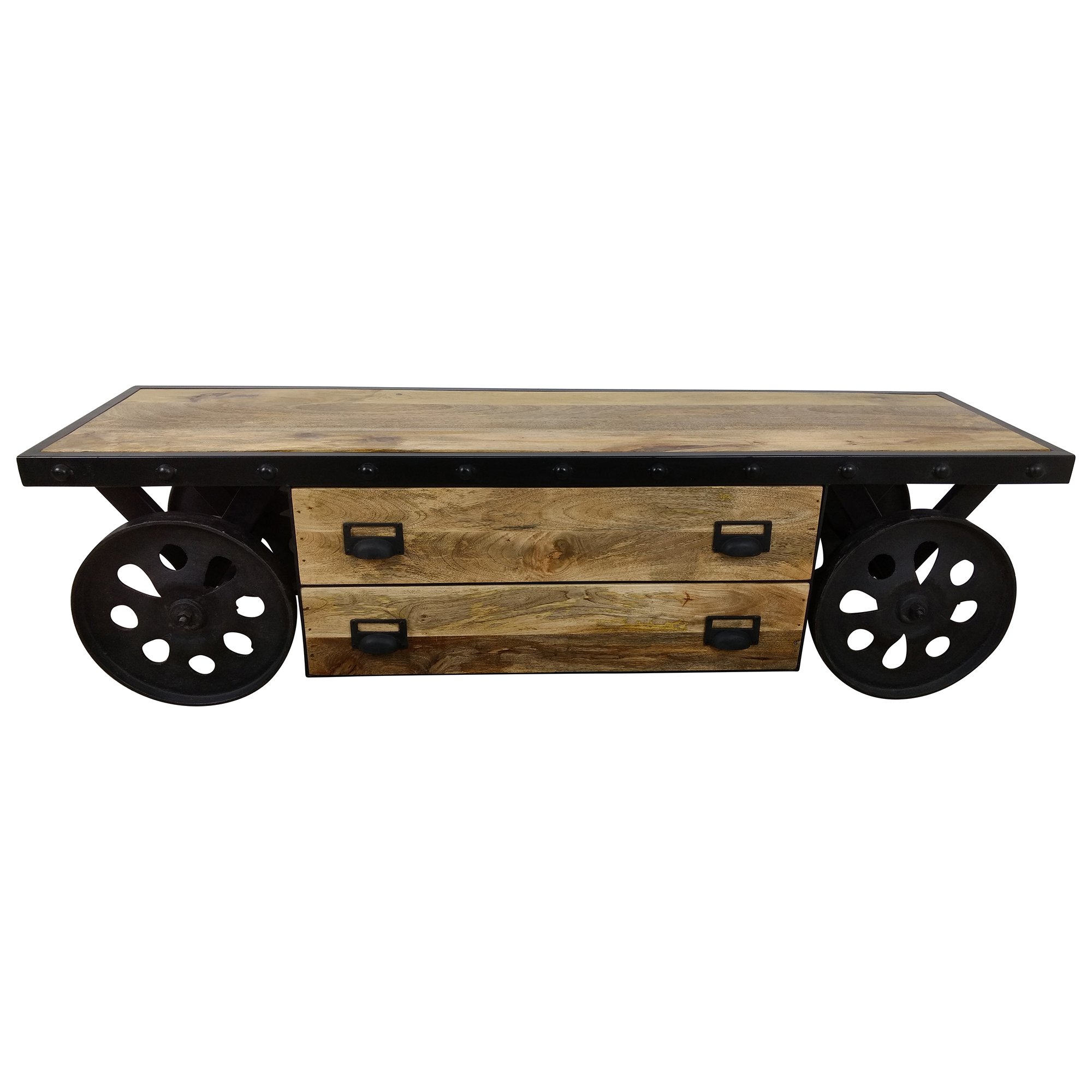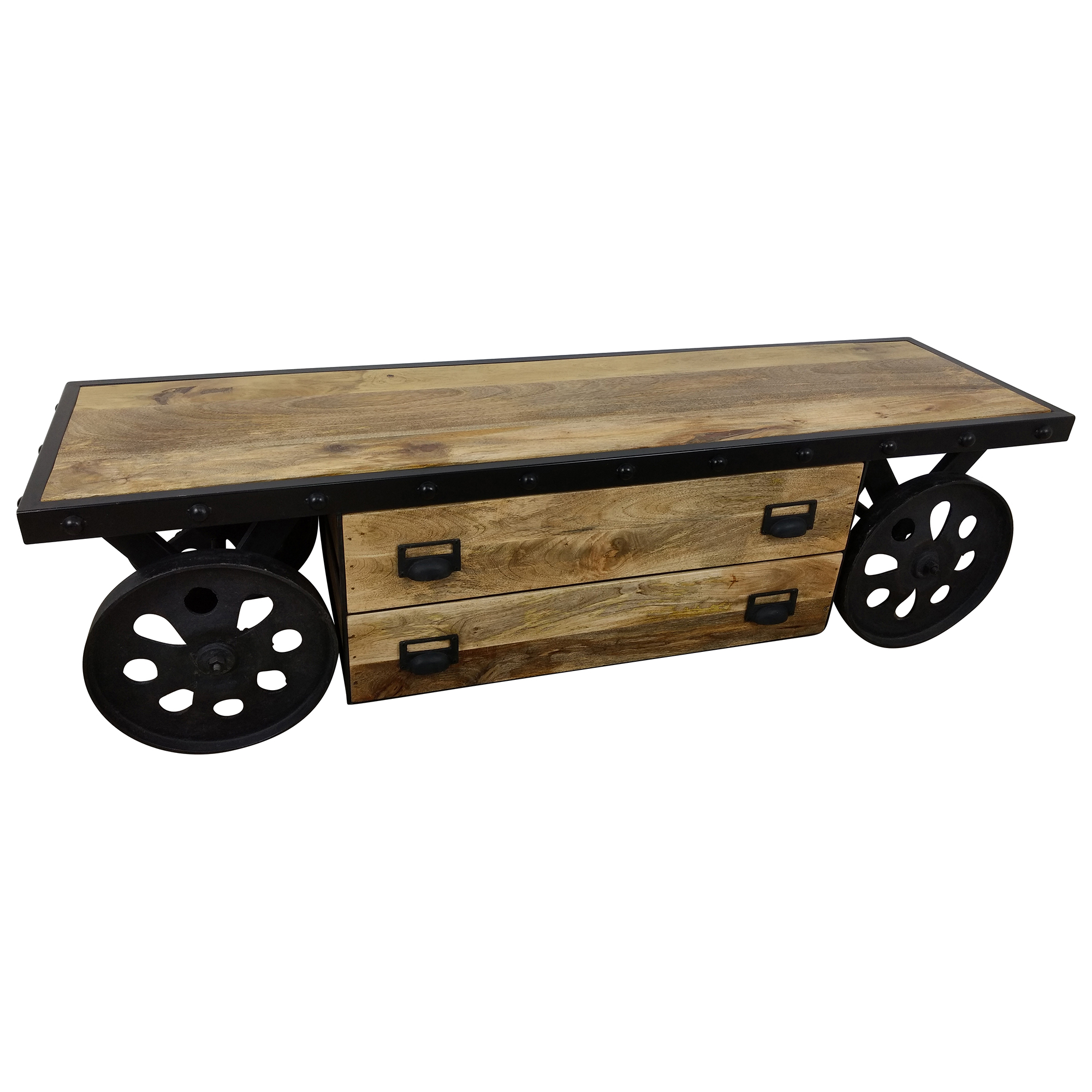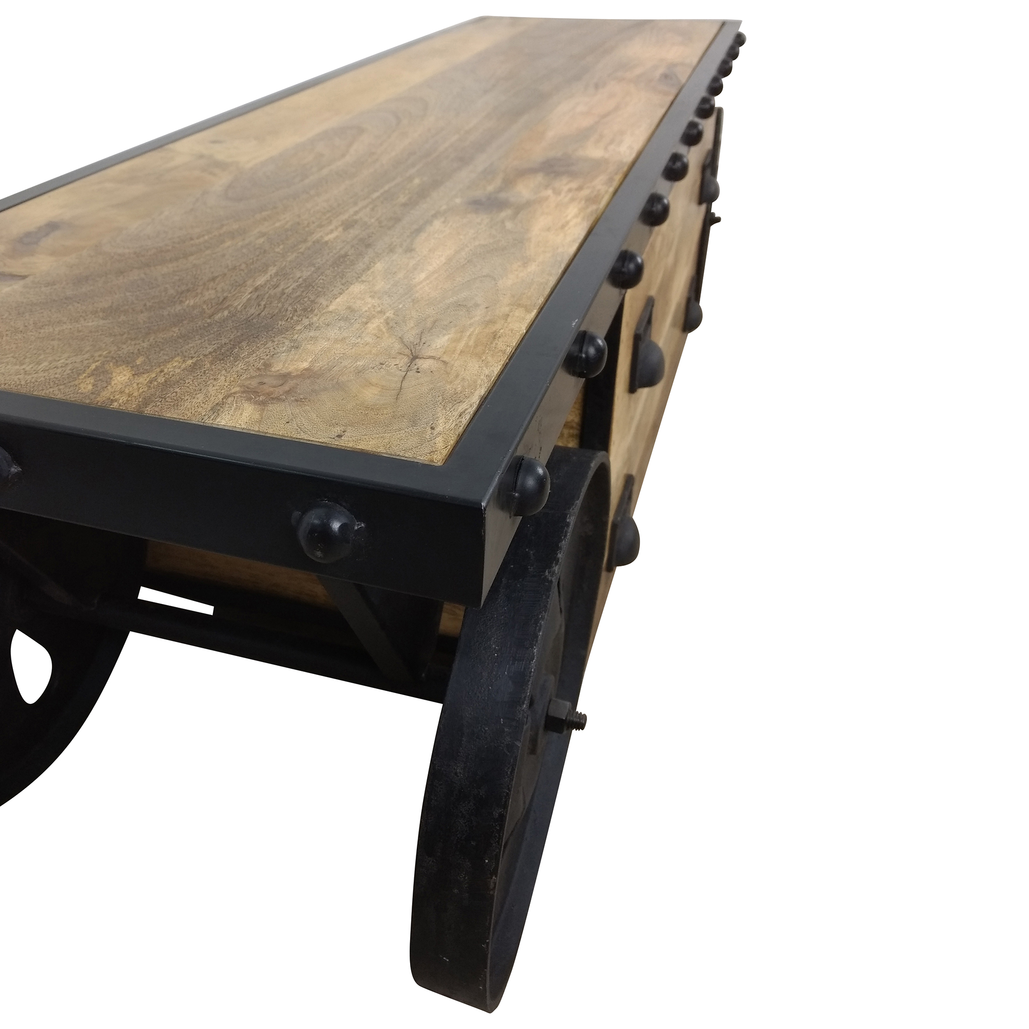 TV-Lowboard Möbel mit Rädern Sideboard Schrank Mango-Holz Industrial Design Loft