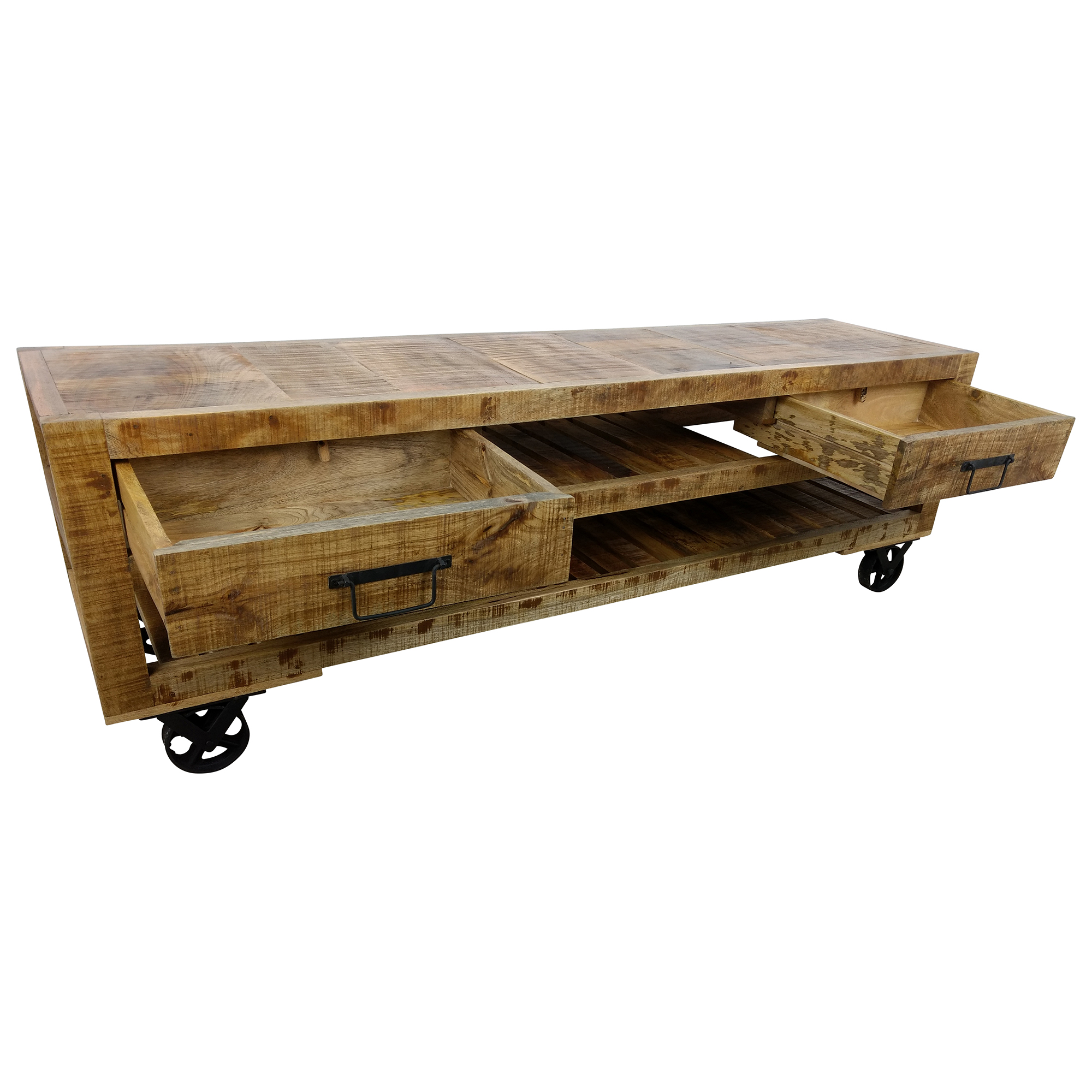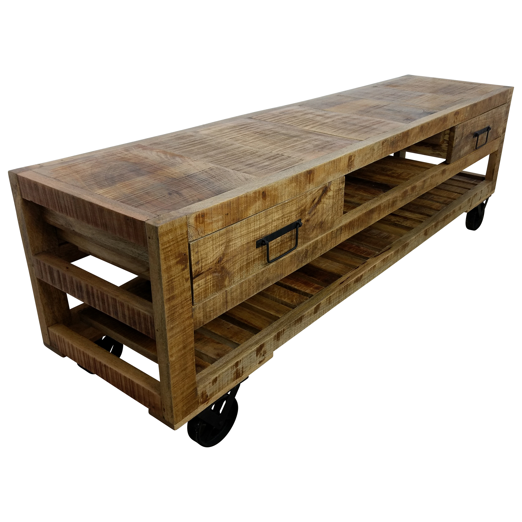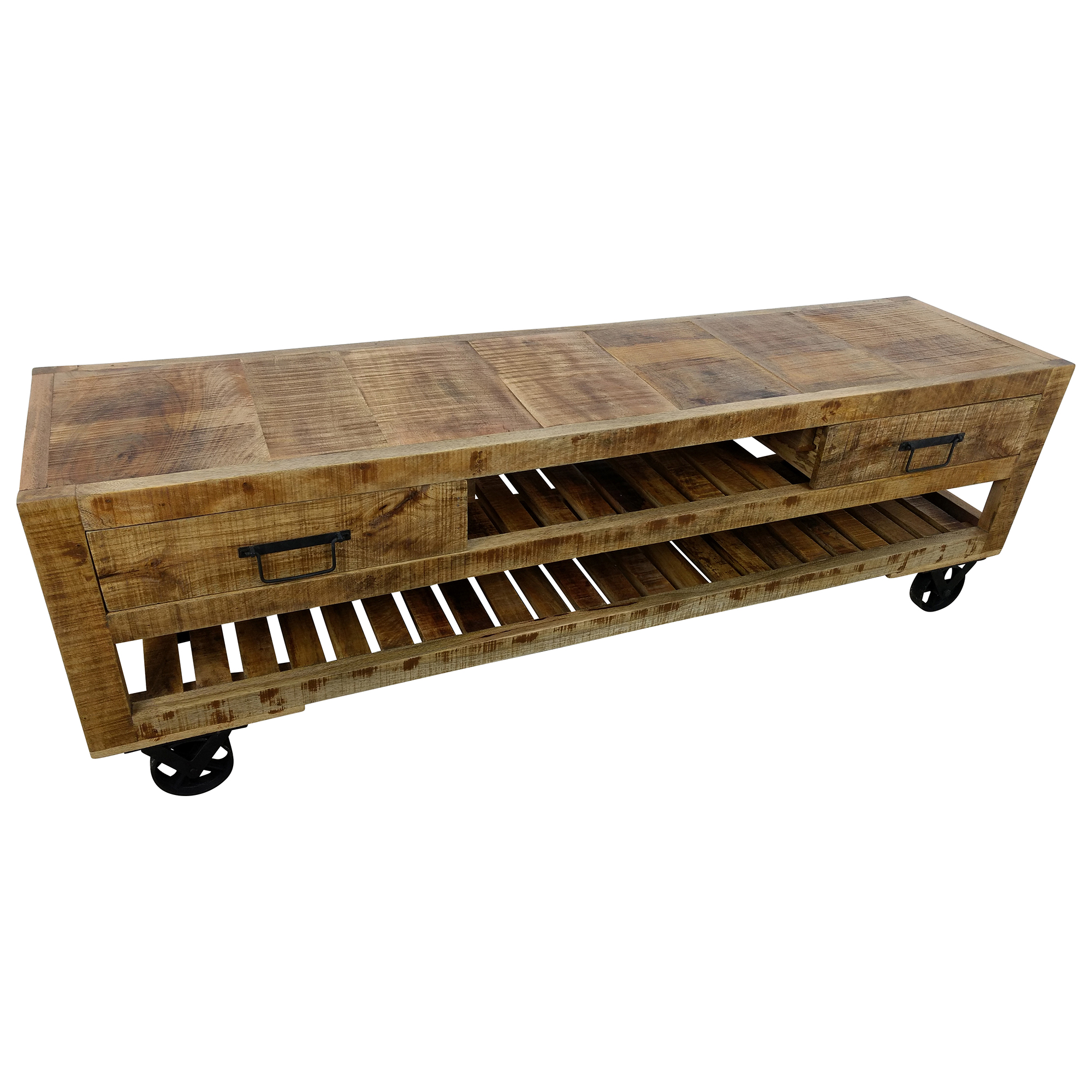 TV-Lowboard Möbel Sideboard mit Rädern Schrank Massiv-Holz Wohnzimmer Design Art